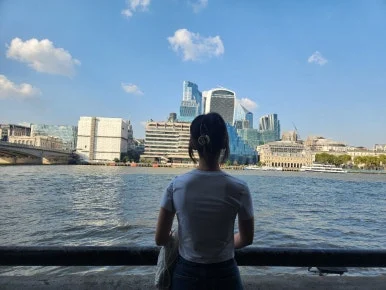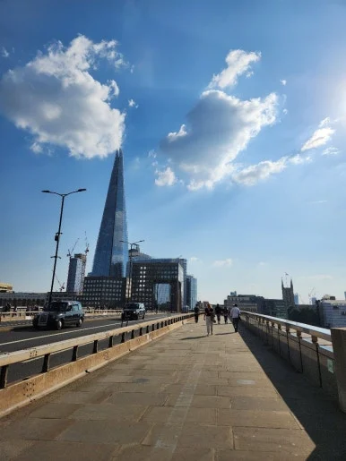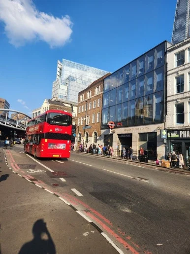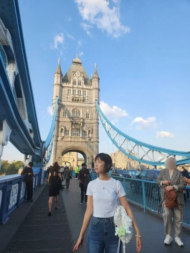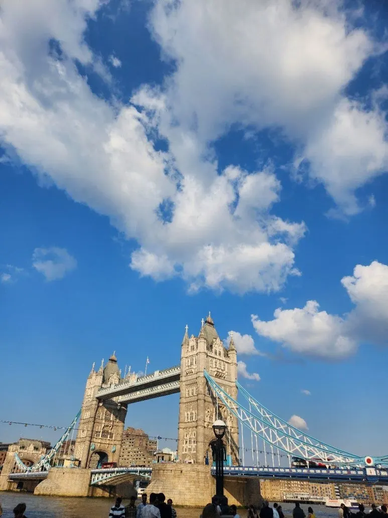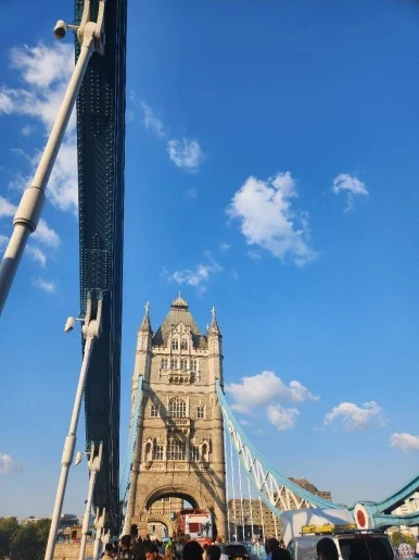 작은 터널을 지나자 템스강이 눈앞에 펼쳐졌고, 대각선 너머로 타워브리지가 보였다! 사진으로만 보던 하늘색 테두리의 다리를 보면서 비현실적인 감각과 런던에 왔다는 현실적인 실감이 동시에 들었다.