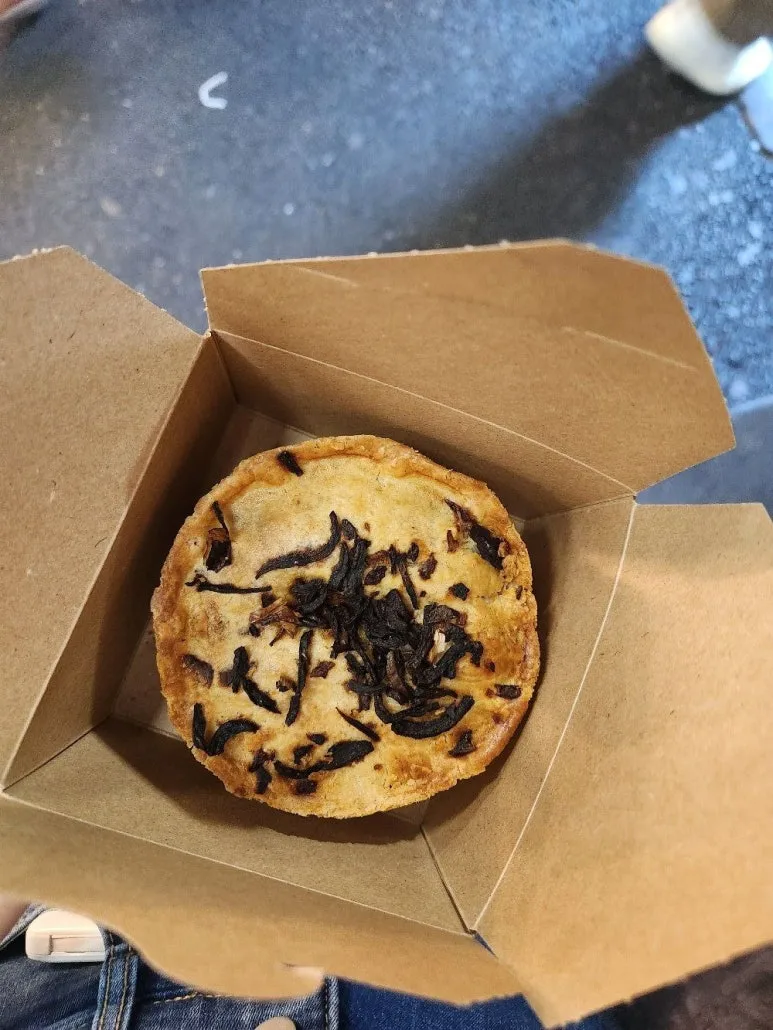 하지만 음식은 눈보다 입으로 직접 즐기는 게 최고인 법이다. 우리는 짧은 고민 끝에 고기 파이를 하나 사서 나눠 먹기로 했다. 손으로 조심조심 반으로 갈랐다. 안에는 녹진하고 진한 갈색의 소스가 큼직한 고깃덩어리와 함께 흘러나왔다. 어렸을 때는 파이에 고기가 들어 있는 게 문화 충격이었는데, 달달한 파이에서는 맛볼 수 없는 고기 파이만의 묵직함이 맛있었다. H와 함께 반쪽씩 파이를 나눠 먹는 순간을 셀카로도 찍었는데, 왜인지 모르게 그냥 그 순간이 재미있어서 피식 웃음이 났다.