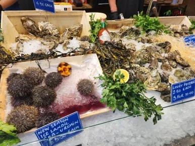 한국의 수산 시장과는 달리 해양 생물체들이 그림처럼 보였다. 한국의 해산물들은 팔딱팔딱 야생적인 그림체가 느껴진다면, 유럽은 한 편의 정물화 같달까... 같은 생선인데 전혀 다른 색깔을 띠는 게 신기했다.