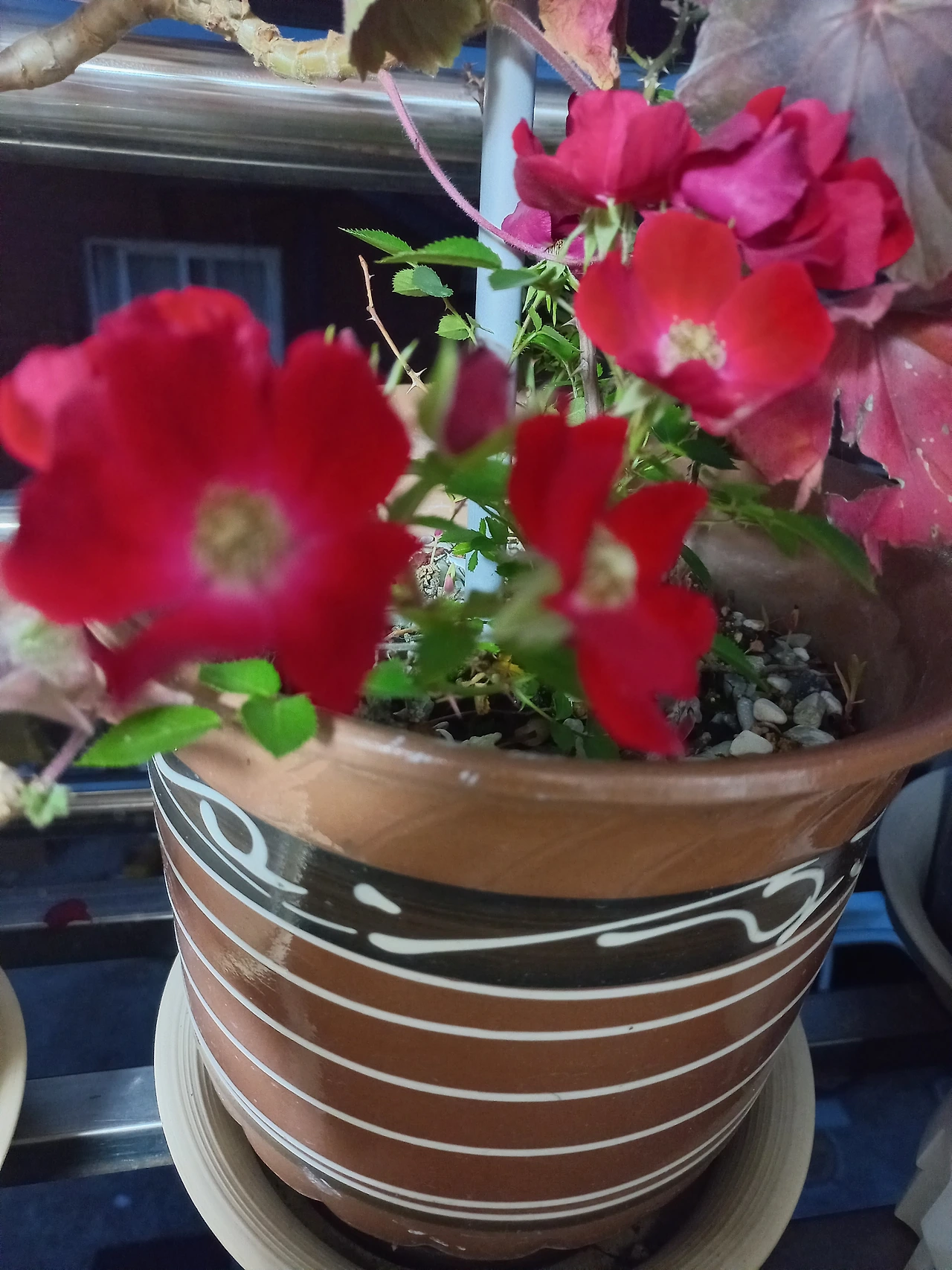 그런데 가시가 있는 장미는 사과 박스에 들어있는 그물망 스티로폼으로 싸서 창밖에 그대로 두었다.