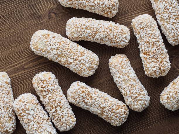 요즘 유과는 조랭이 모양으로 기름에 튀겨 조청 묻혀서 쌀 튀밥으로 가루 낸 옷을 입힌다.
