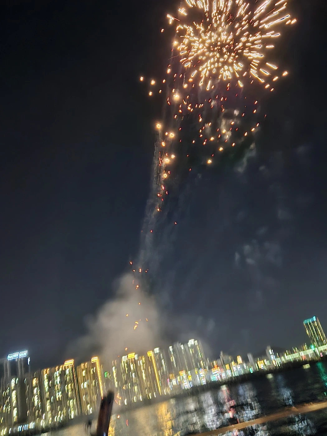 일제히 밤바다를 누비던 요트와 배들이 폭죽을 터뜨리자 밤하늘에
