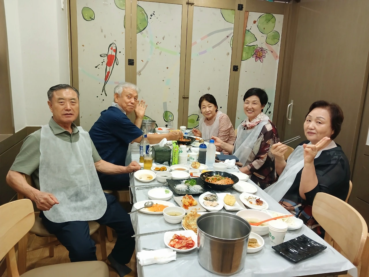 올케언니는 재빠르게 오이 썰고 계란으로 고명 얹고 열무김치 넣은 화려하고 시원한 열무 냉면을 한 상 차려왔다.