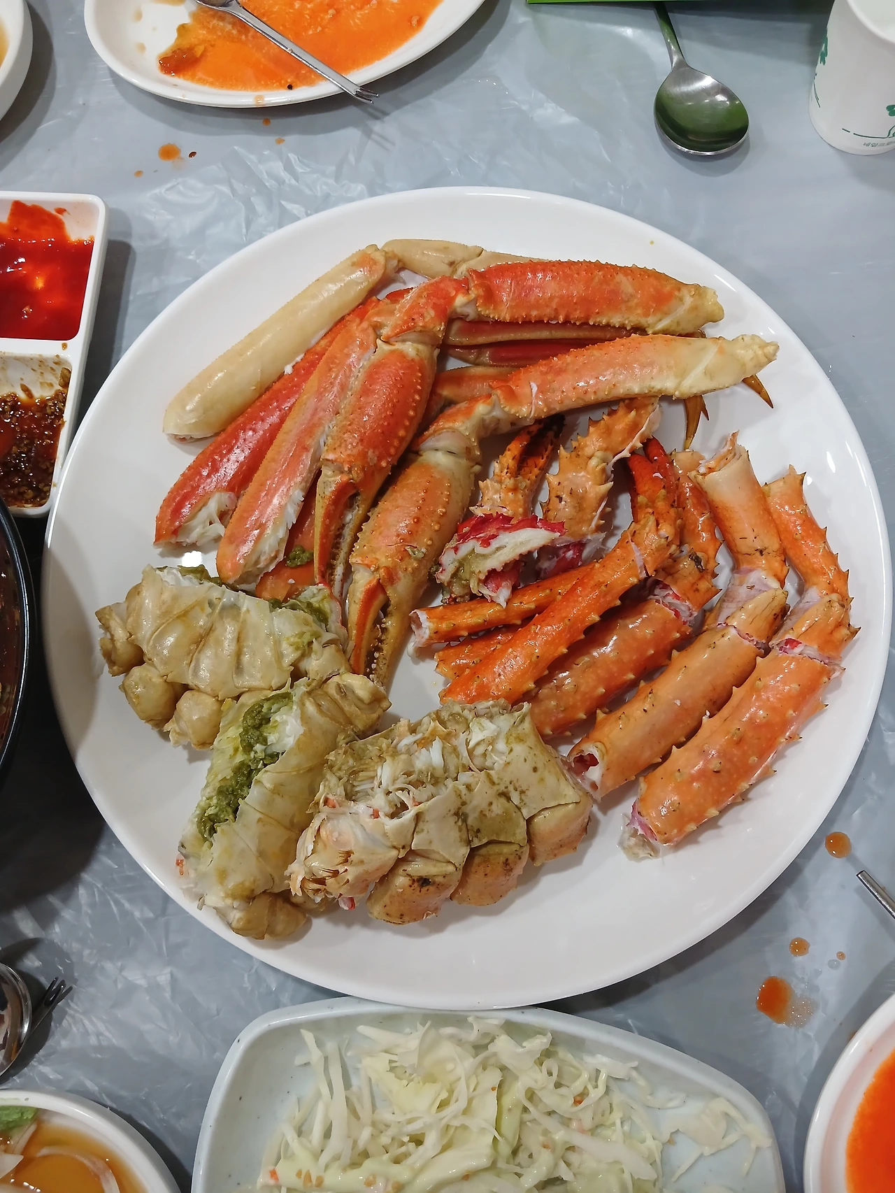 중간중간 오빠랑 통화하며 기장에 있는 대게가 유명한 음식점으로 바로 오라는 연락을 받았다. 먼저 자리 잡고 기다리고 있는 오빠, 올케 언니를 만났다. 형제들이 만나는 자리에 과수원 하는 막내오빠네가 함께 하지 못해서 아쉽다. 비가 자주 내리는 통에 약을 제때 못해서 바쁘다고 한다.