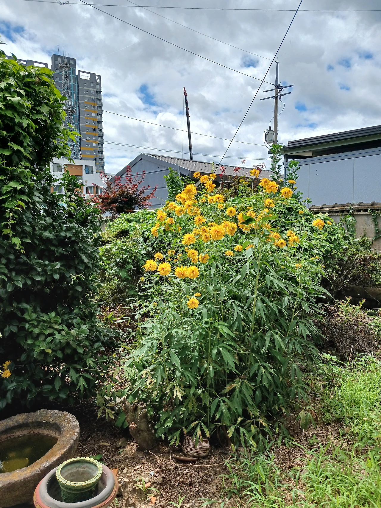 이른 새벽 시골 청량한 공기에 눈을 떴다. 꽃을 좋아했던 엄마는 꽃밭을 사계절 내내 가꾸었다. 주인은 가고 없지만 빈집에 겹 금계국이 노랗게 피었다. 엄마가 살아 계실 때는 마당에 푸른 잔디도 햇볕에 윤기를 내며 반짝거렸다. 틈만 나면 호미 들고 꽃모종 심고 잔디 사이사이에 풀을 뽑아냈다. 예전만 못하지만 폭염에도 끄덕 없이 서있는 꽃나무들이 대견했다. 동 백, 파초, 목단, 담을 타고 올라가는 담쟁이와 포도나무와 어울러 축 늘어진 능소화랑 인사했다. 주인 없어도 너희들끼리 피고 지고 했구나 하고.