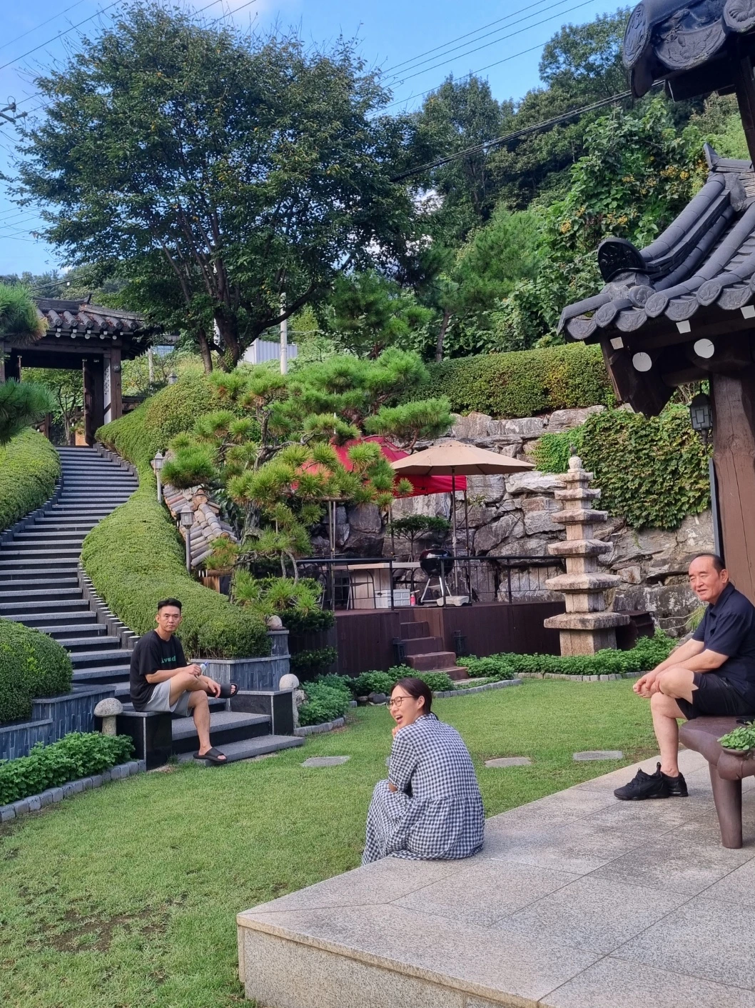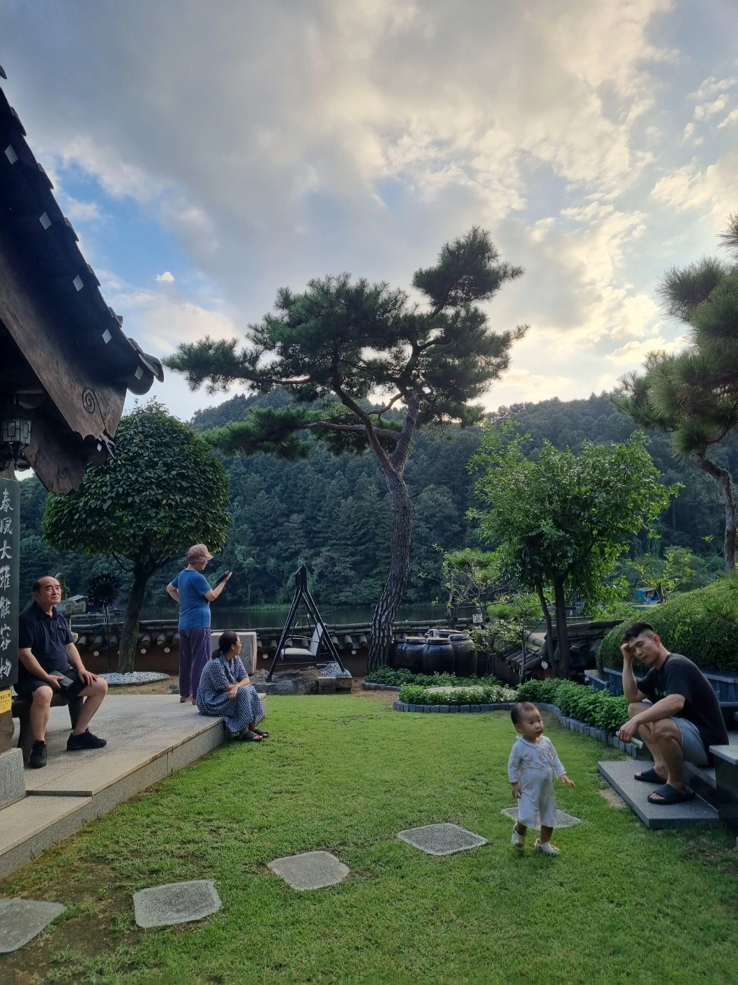 추석에는 며느리가 가평 북한강 주변에 예쁜 한옥으로 지은 펜션을 예약했다.