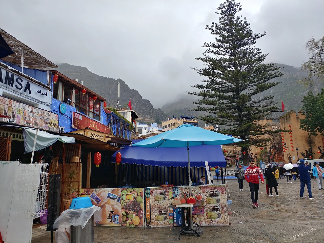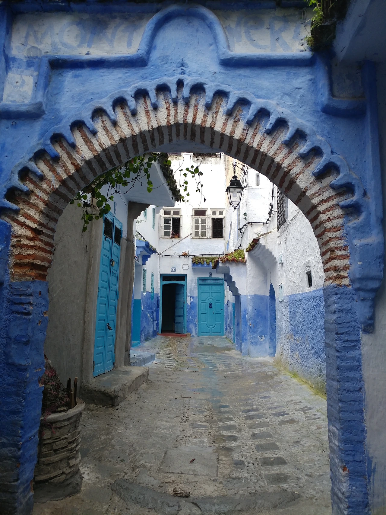 광장을 지나 계단으로 되어있는 좁은 골목길을 올라갔다. 캐리어를 가지고 오지 않은 것이 천만다행이다. 드디어 숙소를 찾았다. 모로코의 특색을 그대로 가지고 있는 전통적인 쉐프샤우엔 건물들 중 하나다. 숙소를 찾느라 고생했던 일은 한순간에 다 잊어버렸다.
