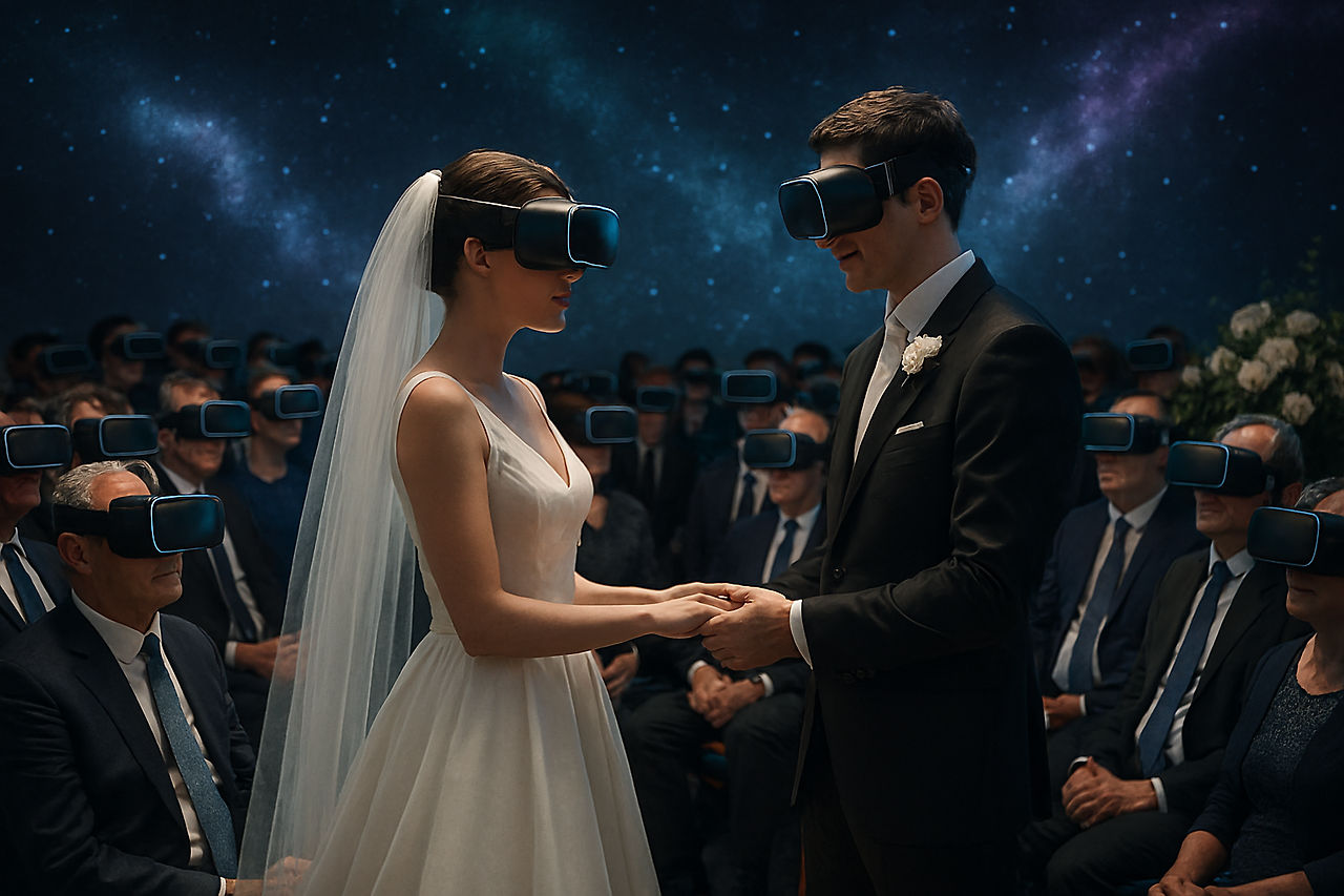 결혼식은 가족과 친구들이 가상현실에서 만나 식이 진행되었다. 팬데믹을 몇 차례 겪고 누군가의 아이디어로 시작된 가상현실 결혼식이 1,2년 전부터 유행이 되었다. 부모님도 활발하게 사회생활을 하고 계셨고 친구들도 여러 나라에 흩어져 있어서 한날한시 한 곳에서 다 같이 만나는 것이 여의치 않아 시도했다. SNS친구들도 부담 없이 드나들 수 있어서 모두들 만족하는 눈치다.