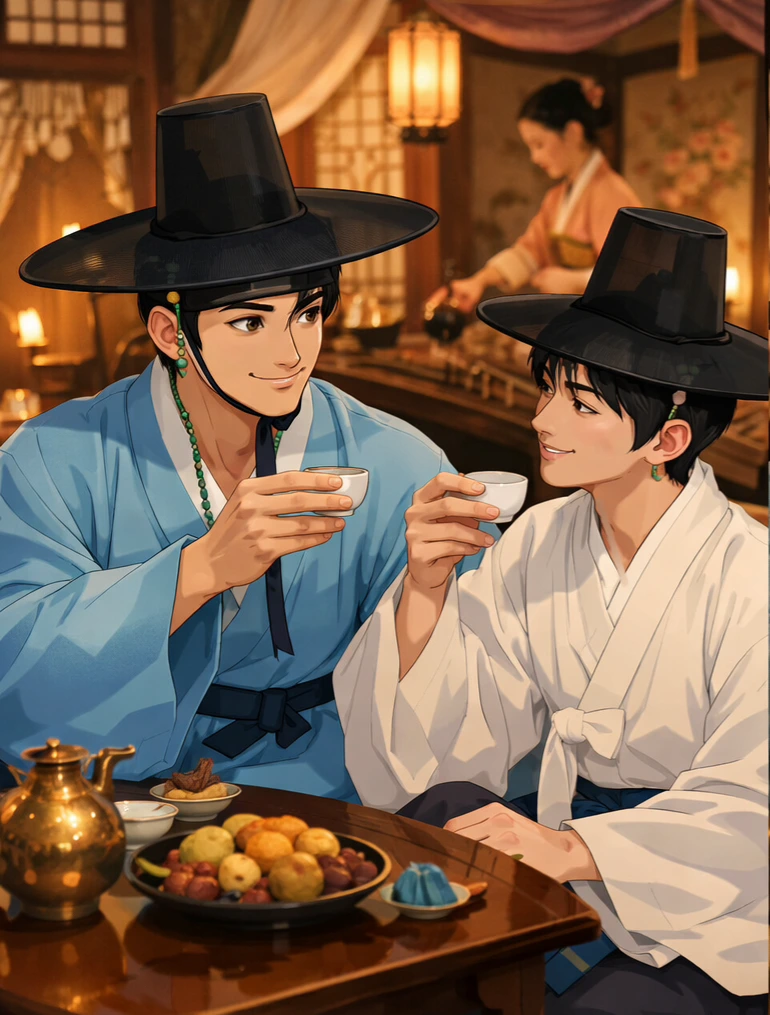 지우는 이제야 정신을 차린 듯 도현과 앞에 놓인 주안상을 번갈아 바라봤다. 구절판에 떡갈비, 산해진미가 놓여 있고 궁궐의 어의들이 빚어 임금께 올린다는 향온주(香溫酒)가 있었다. 효원각에서 가장 비싼 술이었다.