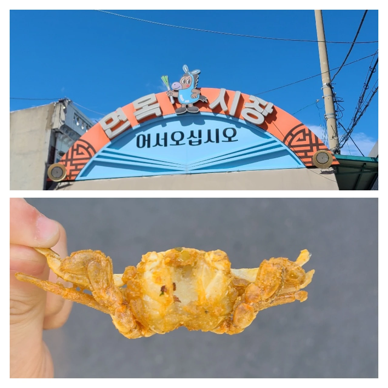 수족관에서 구입할 물고기를 고른 남편의 손을 끌고 면목 시장으로 향했다. 남들에게는 늘 있는 일상의 장소이지만 우리에게는 그 장소마저 특별했다. 소박한 곳이었지만 우리는 즐겁게 구경을 마쳤다. 그리고 처음 들어올 때부터 눈여겨봤던 가게에서 새우튀김과 게 튀김을 사 가지고 왔다.