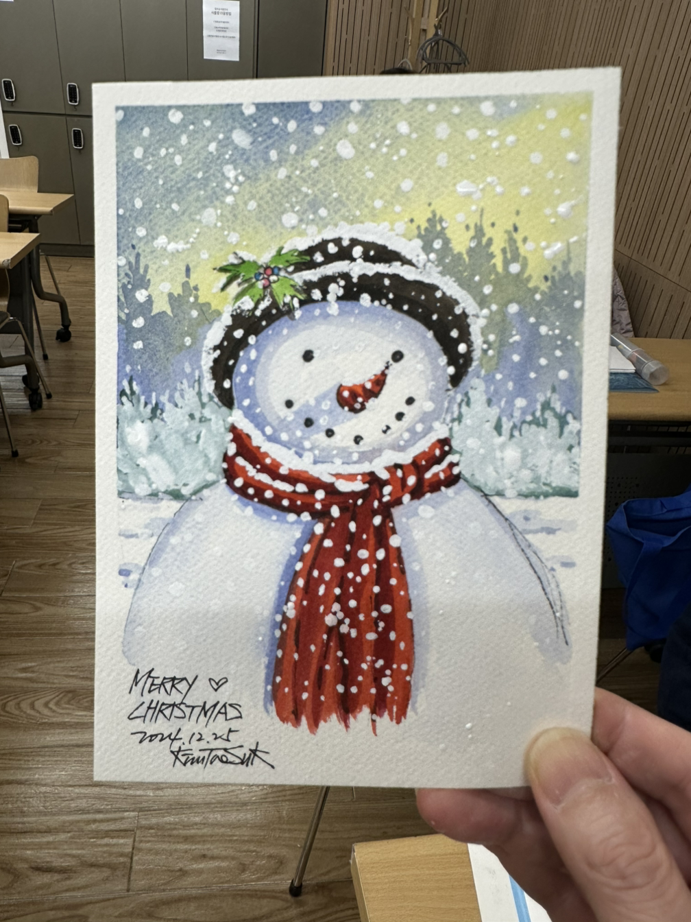매년 12 월이 되면 카드를 직접 그려서 만드는 수업을 진행을 한다.