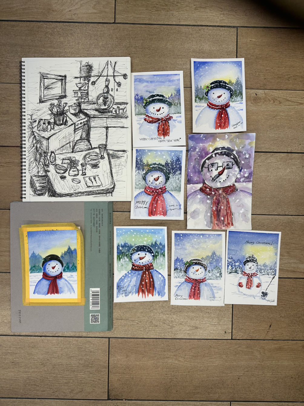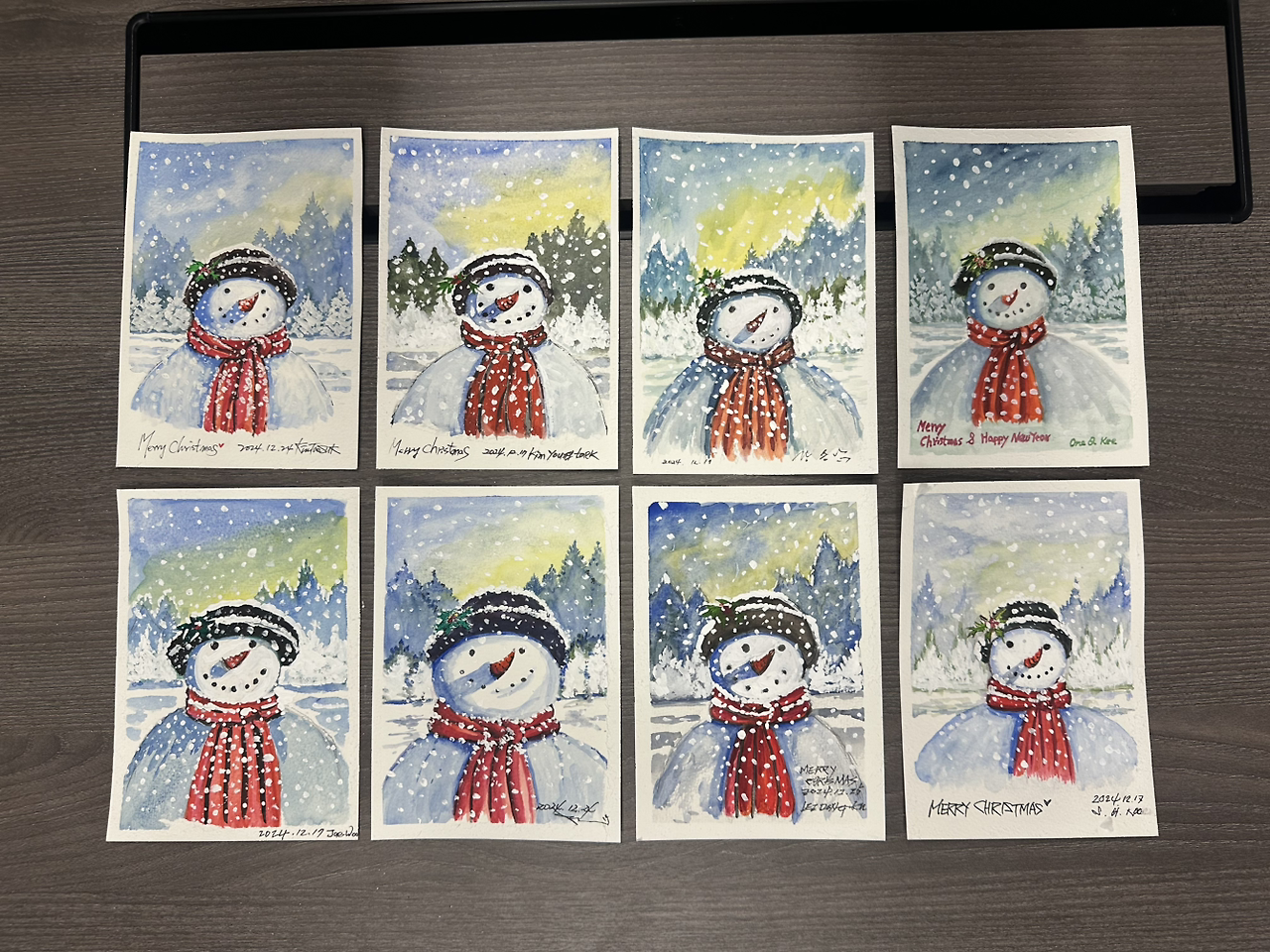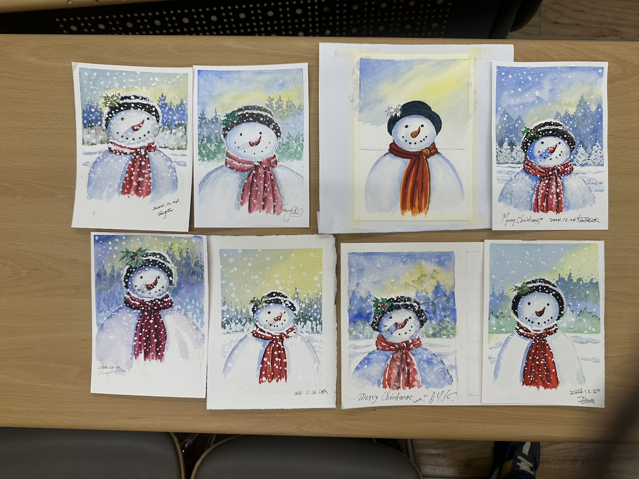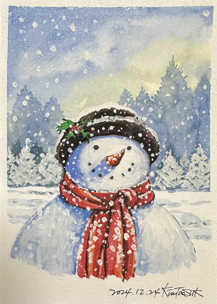 회원님들이 연세 있으신 분들이 있다 보니 손자 손녀에게 크리스마스 카드를 선물할 때 캐릭터가 주인공인 카드를 받으면 매우 기뻐했다는 얘길 듣고 겨울과 크리스마스를 상징하는 "스노우맨"을 그리기로 했다.
