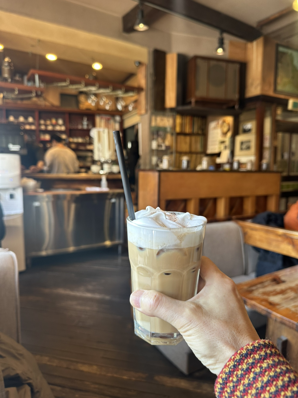커피 위에 하얀 눈이 쌓인 것 같은 크림덩어리가 혀끝을 부드럽게 녹여 주고 따뜻한 밀크 맛의 커피 한잔은 옛 추억에 젖게 만들어주었다.
