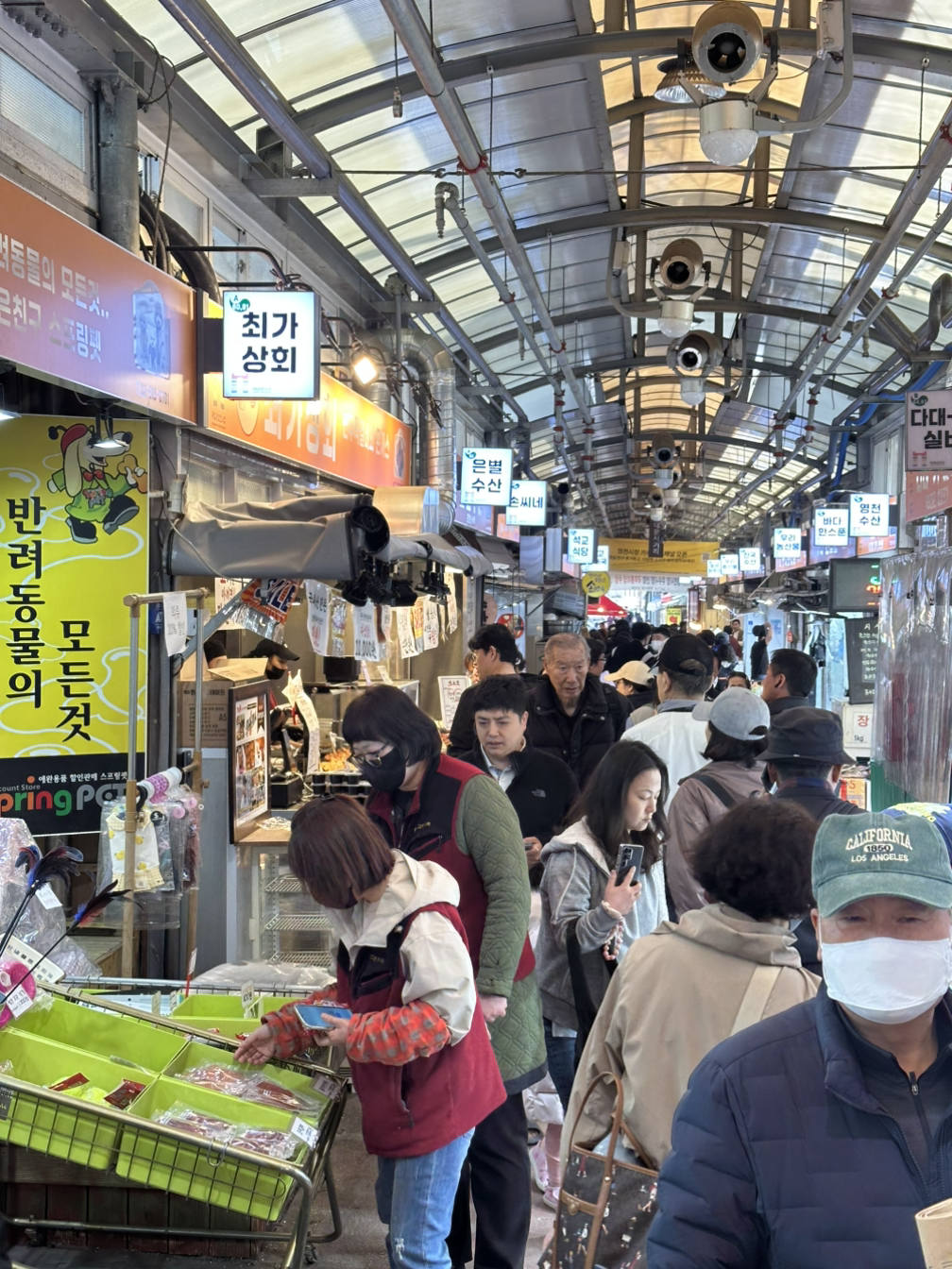 재래시장 분위기, 사람 사는 생동감에 취해 다들 즐거워하신다.