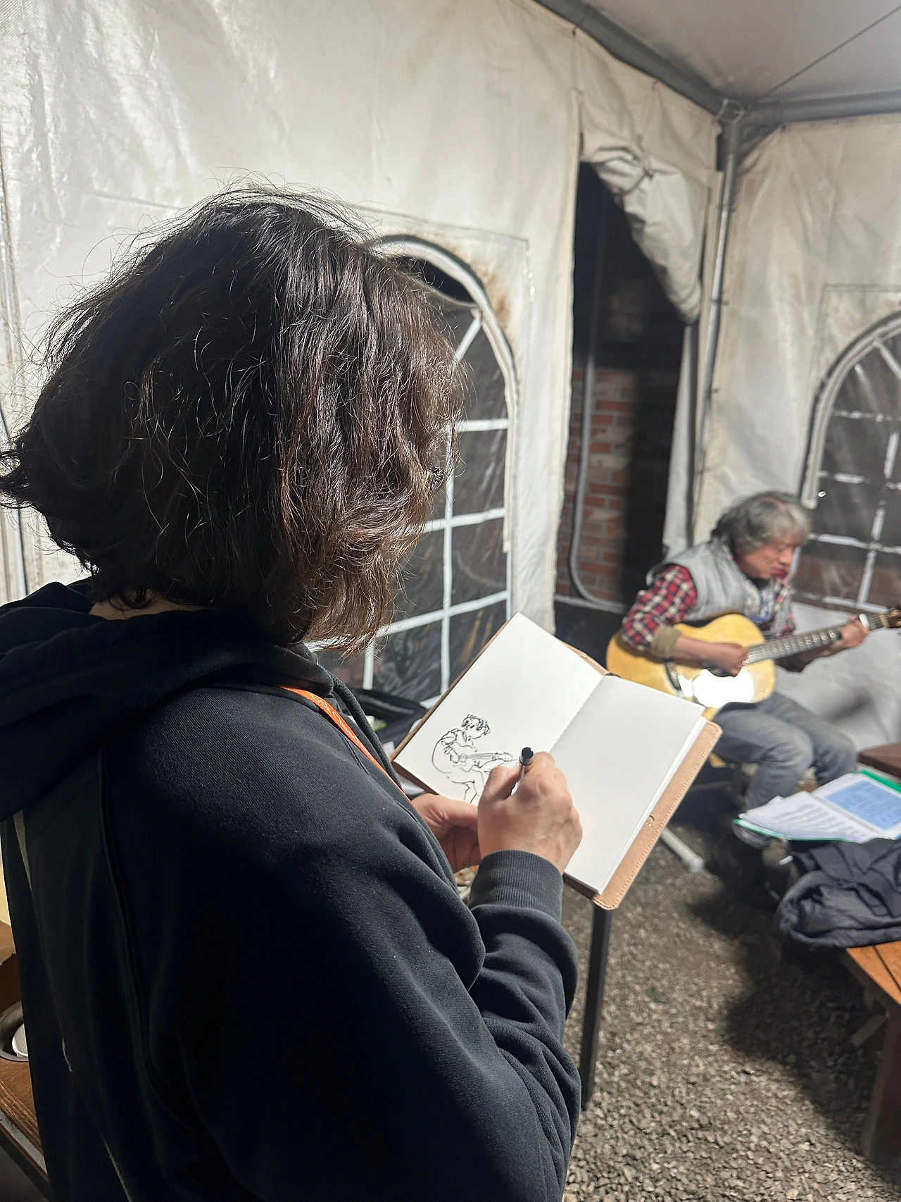 '먹물 드로잉'을 소개했다. 나무젓가락을 깎고, 소분해 온 먹물을 나누며, 단순한 나무 한 그루에서 시작해 본그림 시연까지. 시간이 조금 부족해 참여자분들께서 작품을 끝내진 못했지만, 그 짧은 시간 안에도 감동과