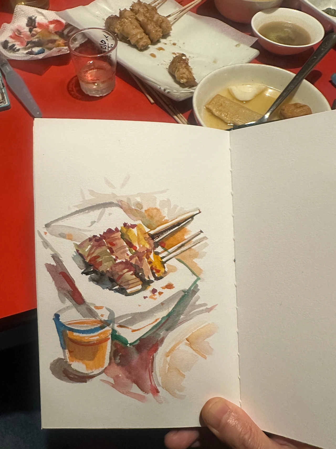 춘천에서 마련해 주신 작가들 숙소로 이동해 초정작가로 참여한 이린선생님, 송기성선생님과 호텔 주변의 꼬치전문점 "투다리"에서 송 선생님의 "꿀주"를 나눠마시며 서로에 대한 생각과 마음을 나누는 시간도 함께했다.