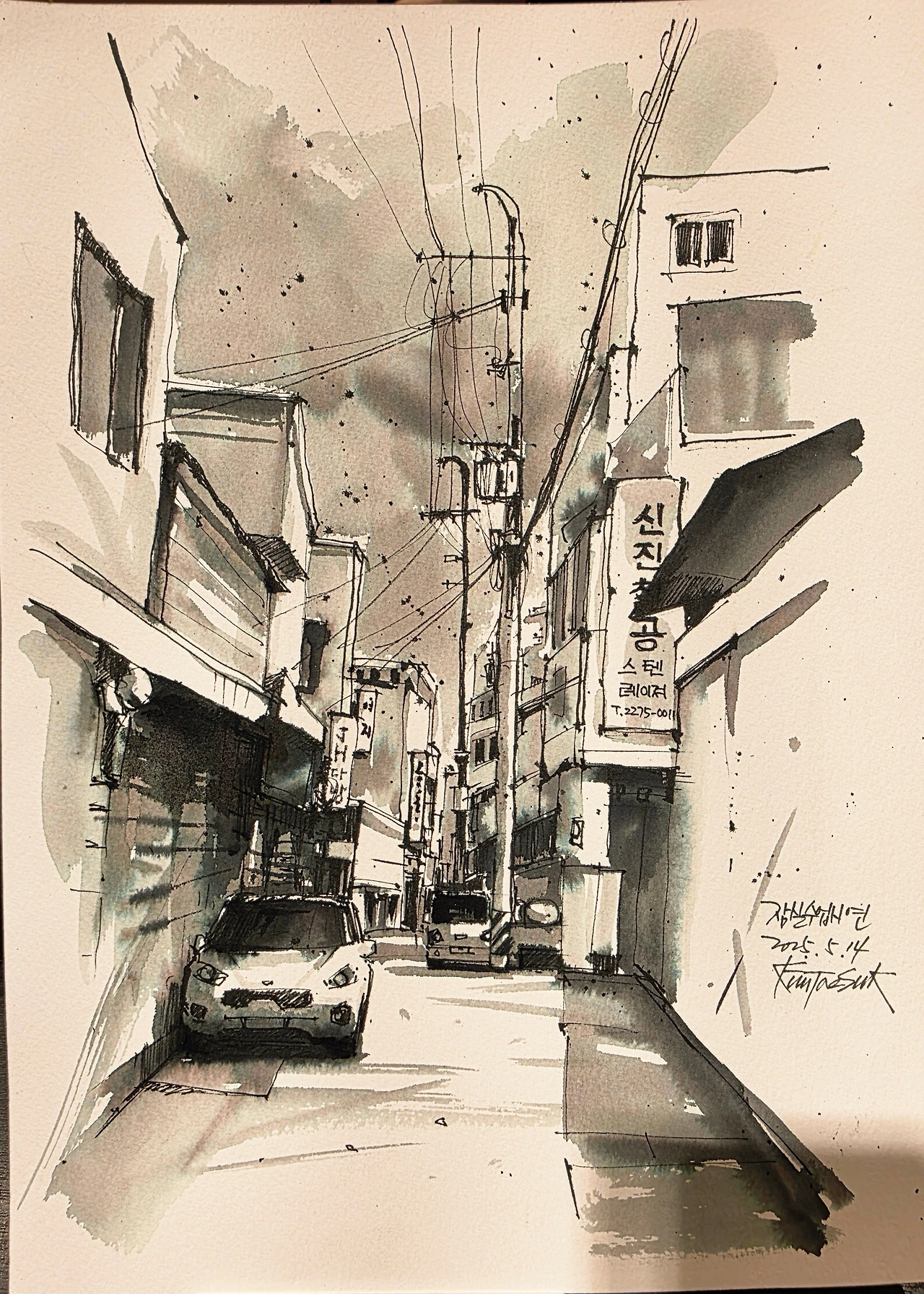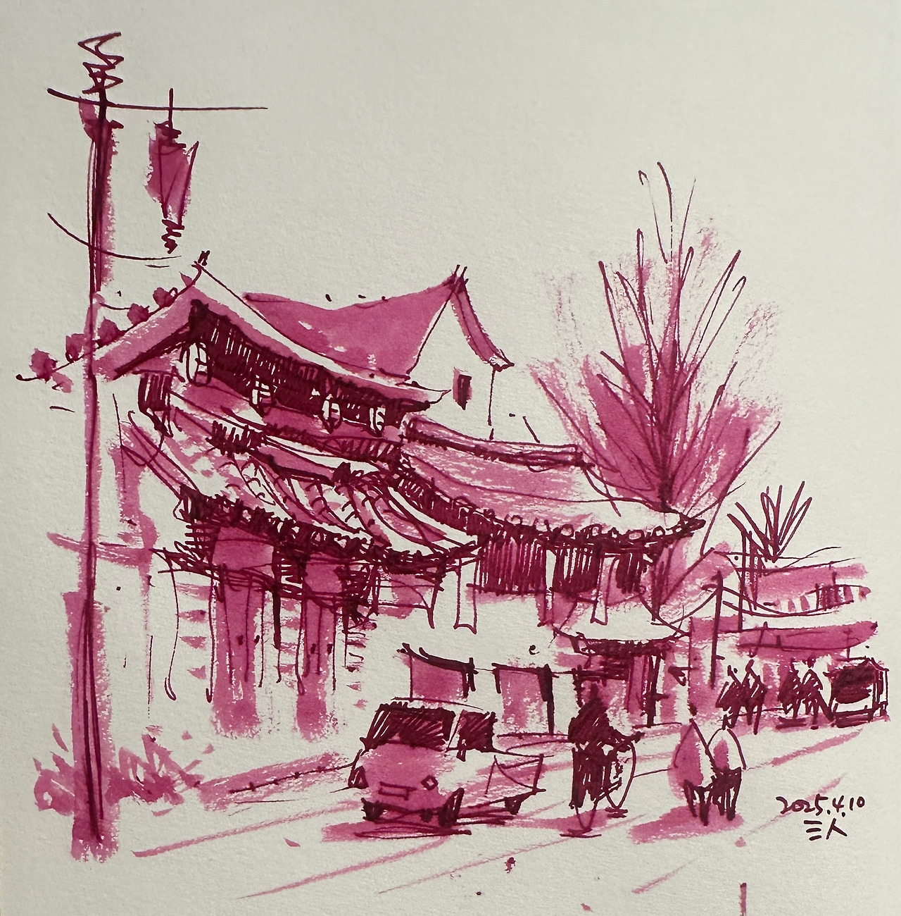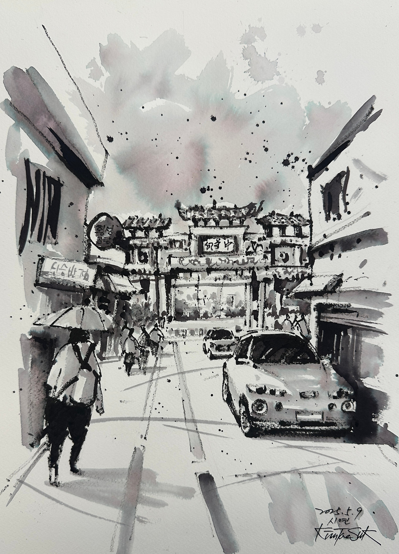 최근에는 다양한 색상의 수성잉크로 단색 채색을 시도하고 있는데, 특히 자바잉크의 검정은 물과 섞으면