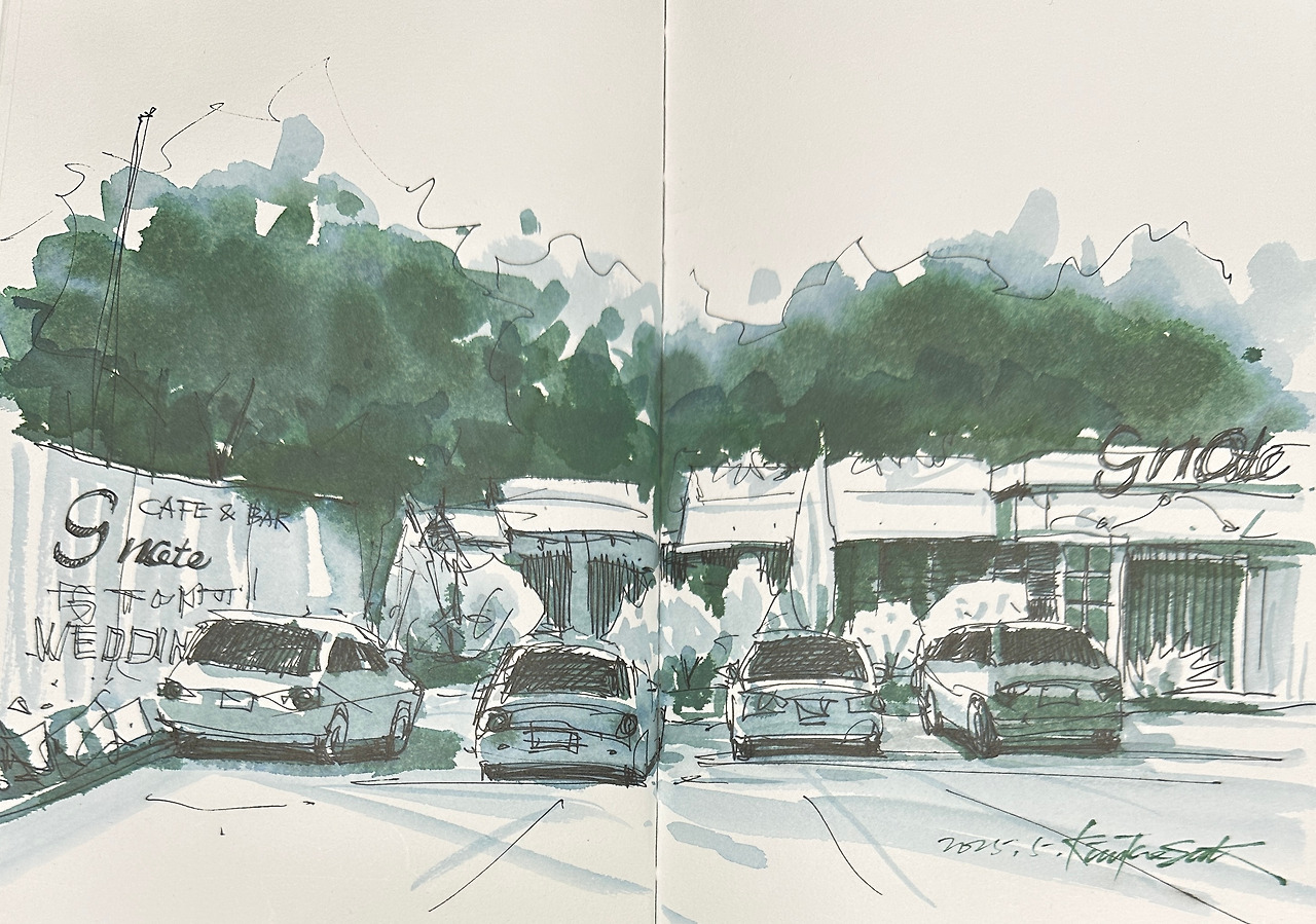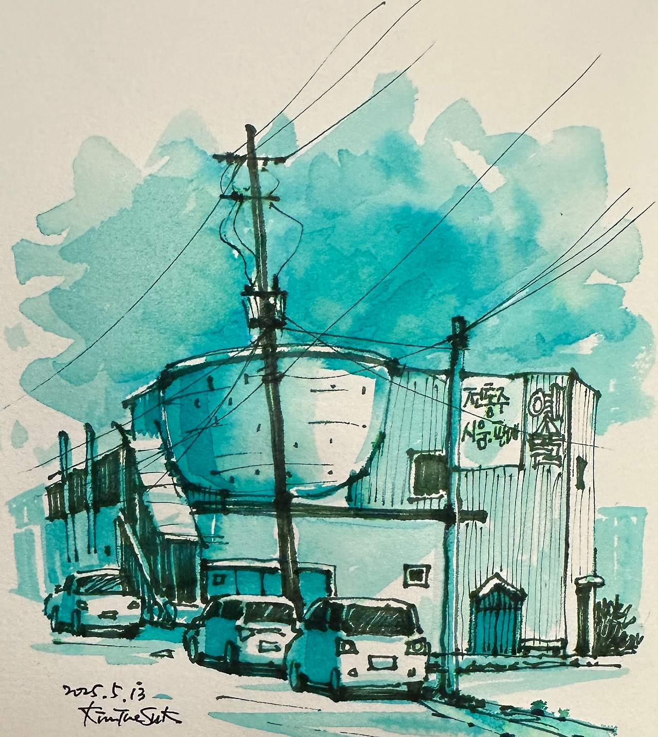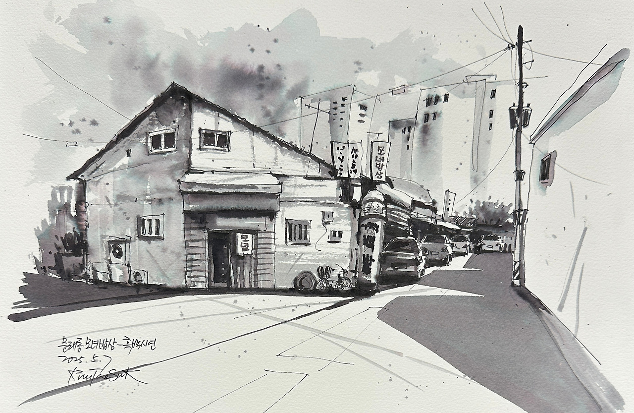 수채화 물감의 검정색을 사용하거나, 평소에 잘 쓰지 않던 검정 수성잉크를 꺼내 쓰기도 한다.