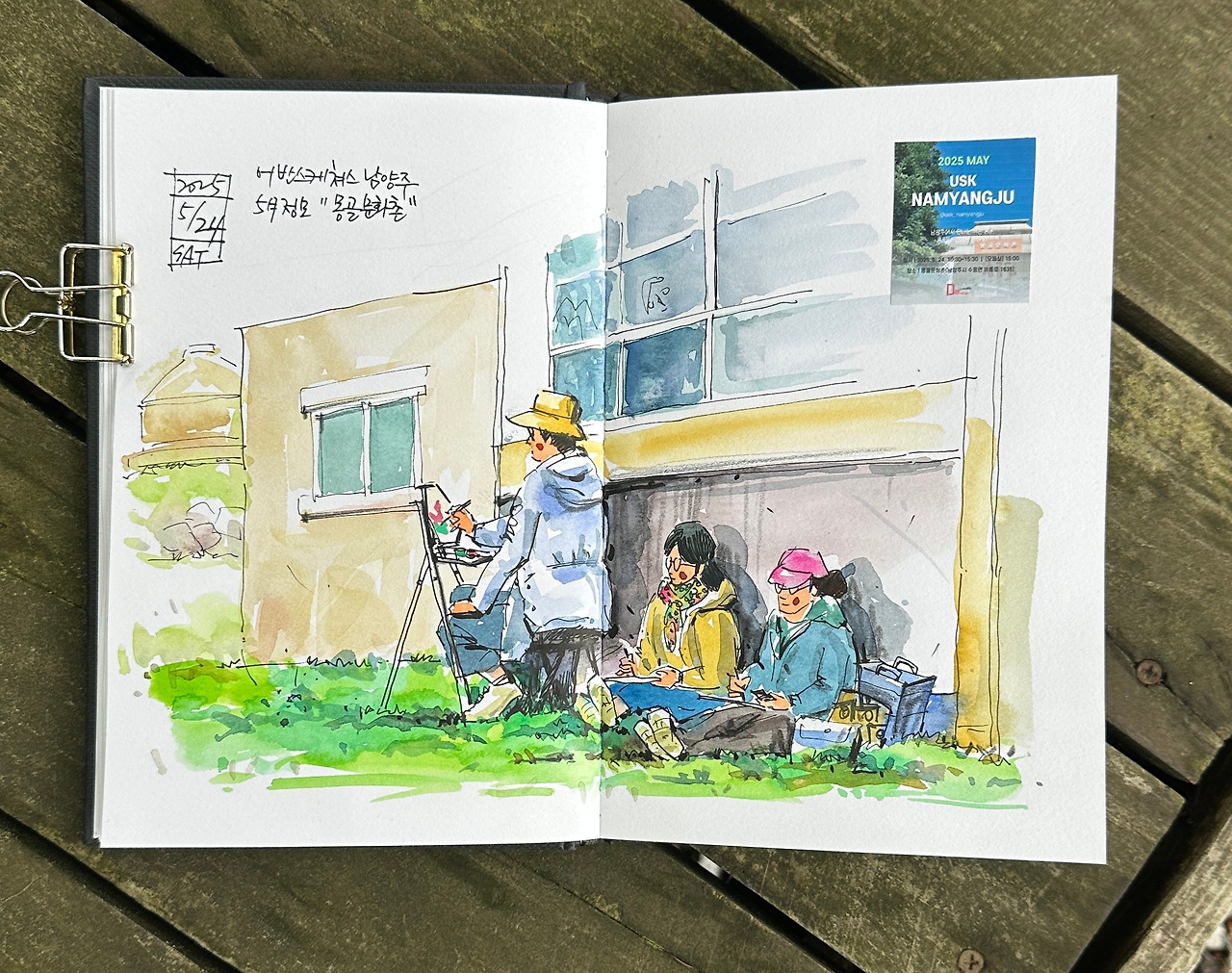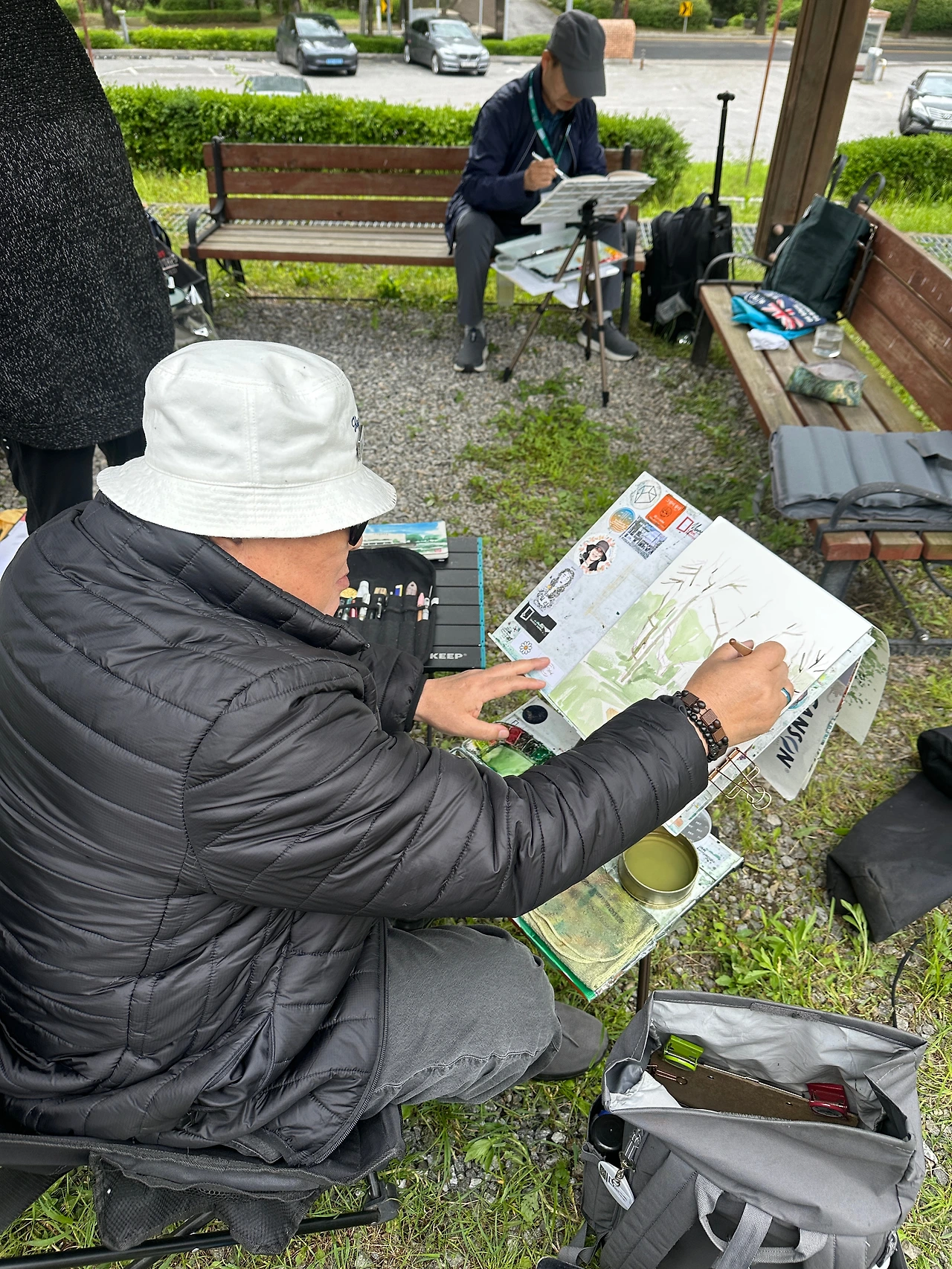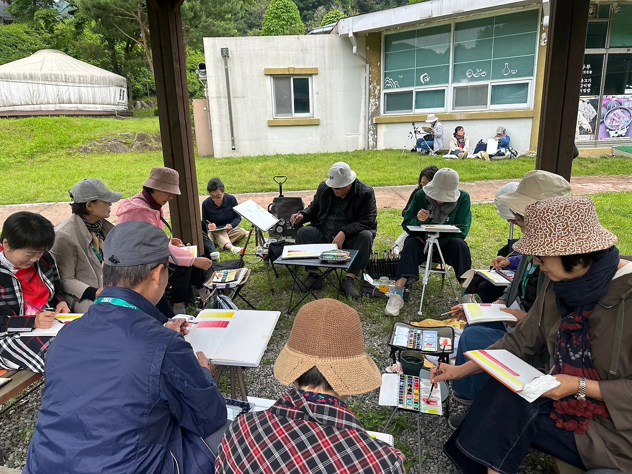 야외에서 진행된 수채화 레슨