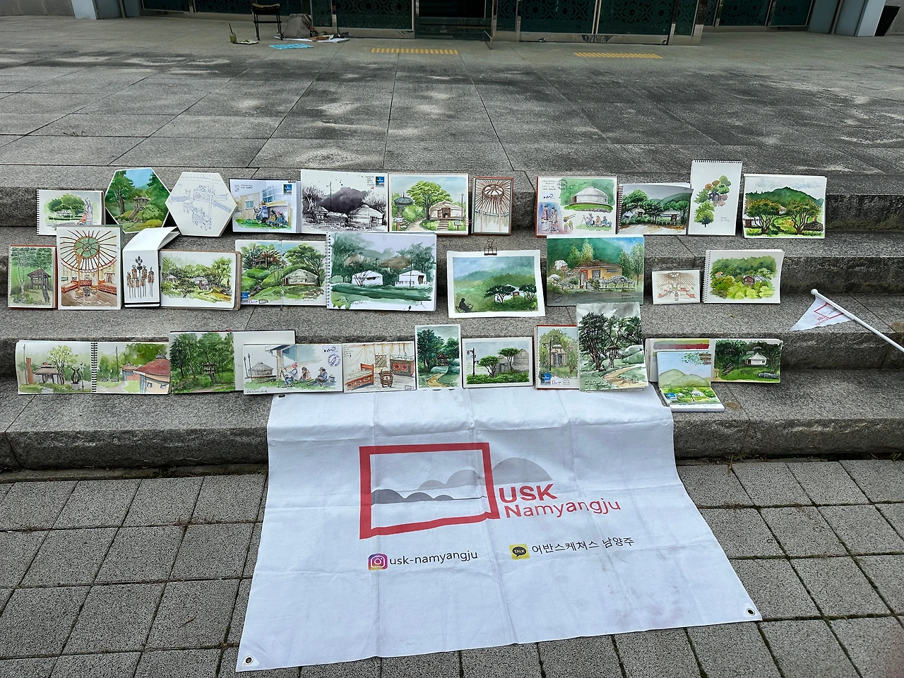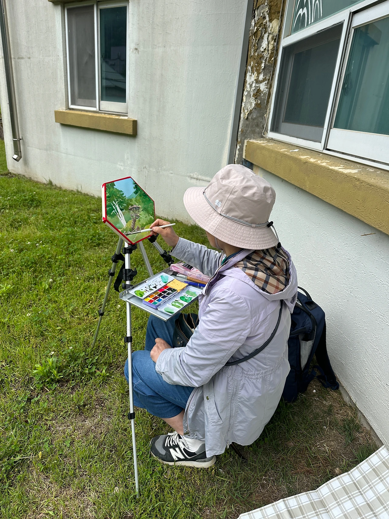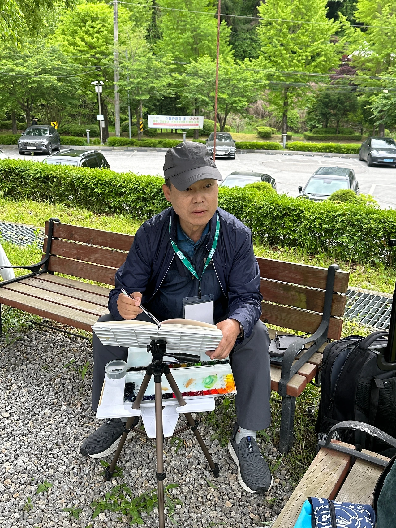 야외에서 진행된 수채화 레슨