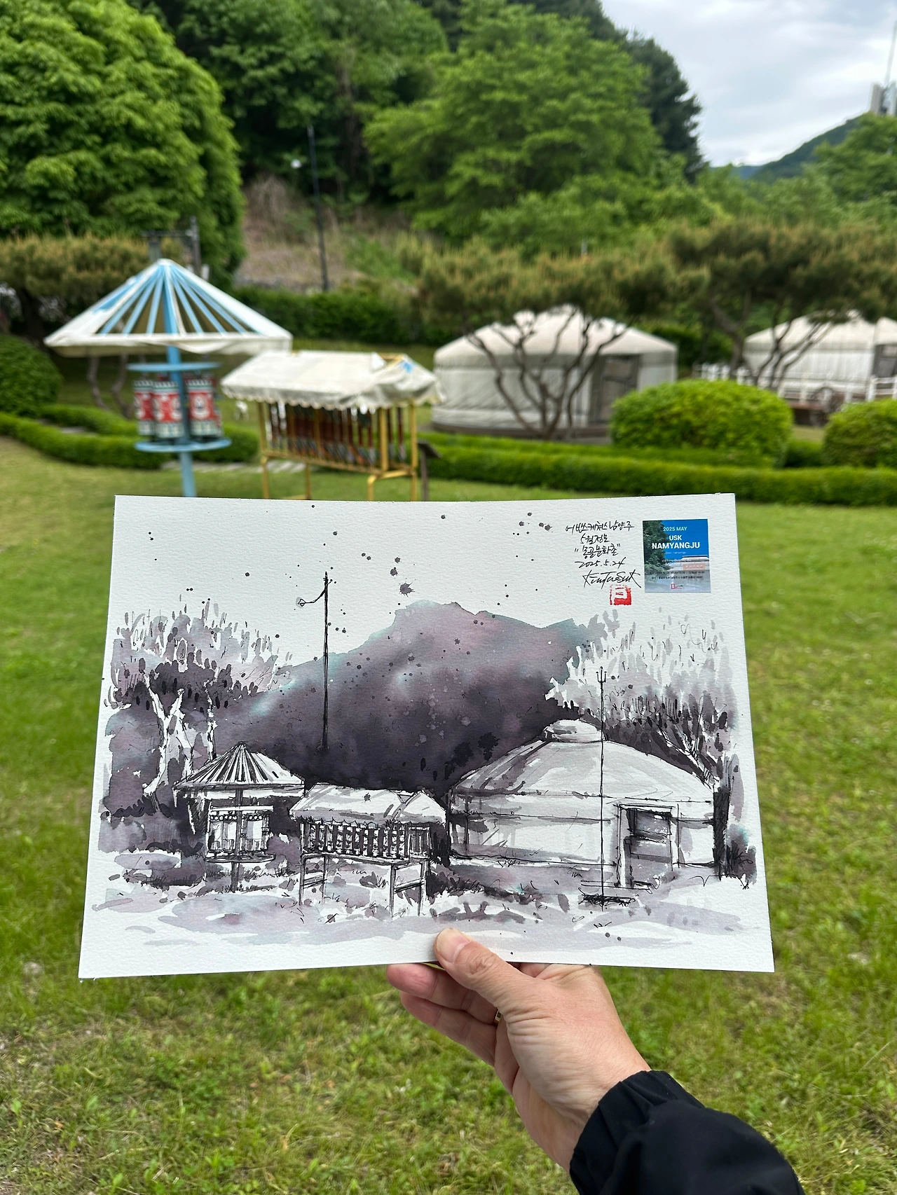 흐린 날씨 속 수성 잉크를 활용한 흑백 채색이 오히려 분위기를 더 살려주었다.