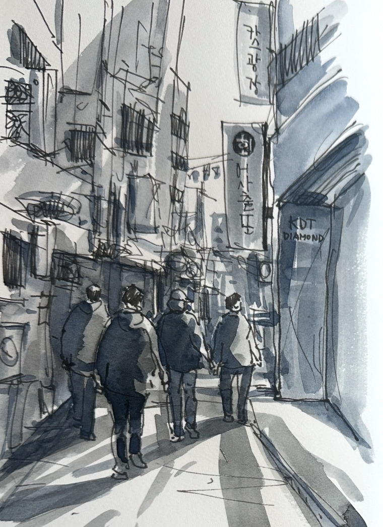 나와 만났던 사람들, 그리고 그들과 함께 머물렀던 장소를 러프하고 단순하게 그려보곤 한다.