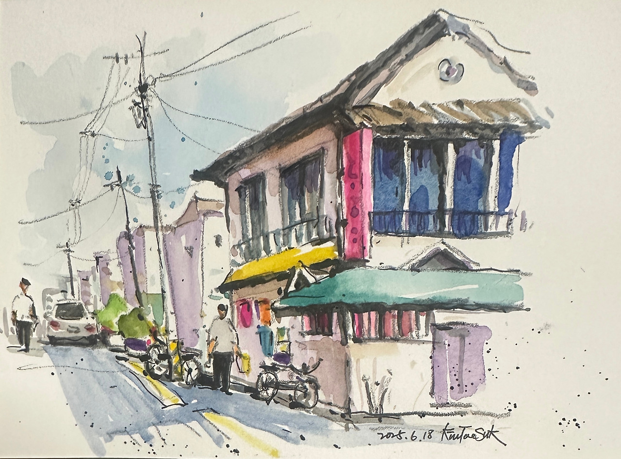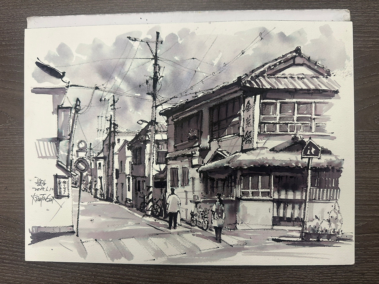펜 드로잉에 가볍게 얹은 수채 채색은 담백하고 섬세하게 나타난다.