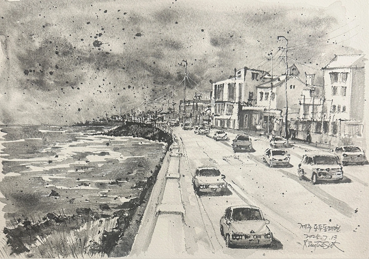 비가 세차게 내리니 지난 2월 제주에서의 전시참여 때 생각이 난다.