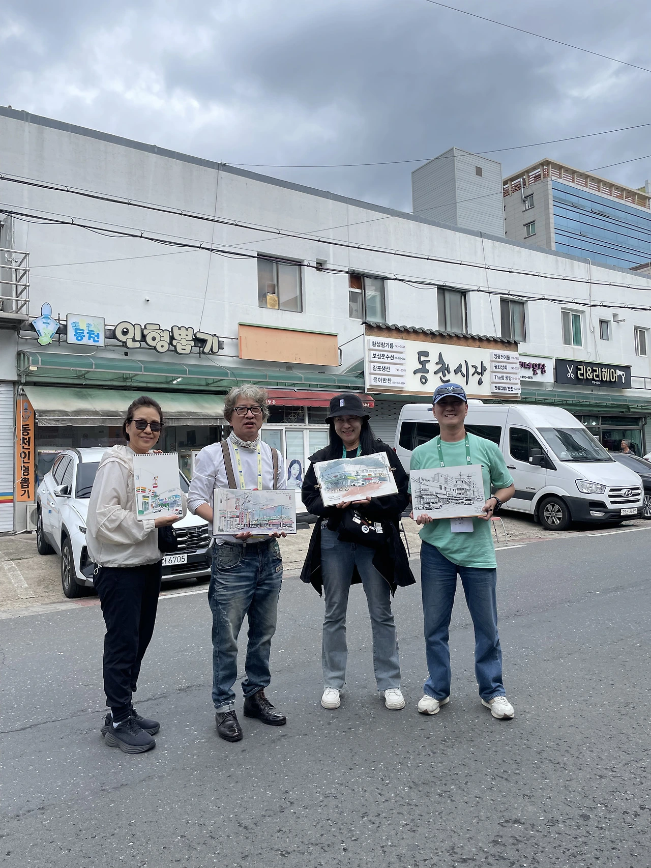 다시 경주시청 앞 “동천시장”으로 이동해 빅 스케치에 참여했습니다.