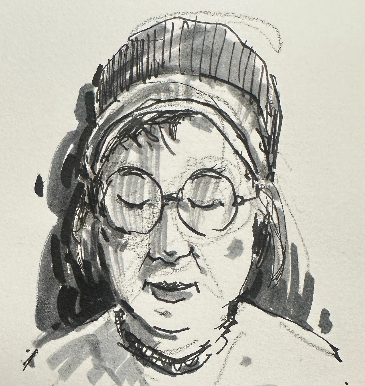 회색톤 펜으로 흑백 명암을 살려 표현했다.