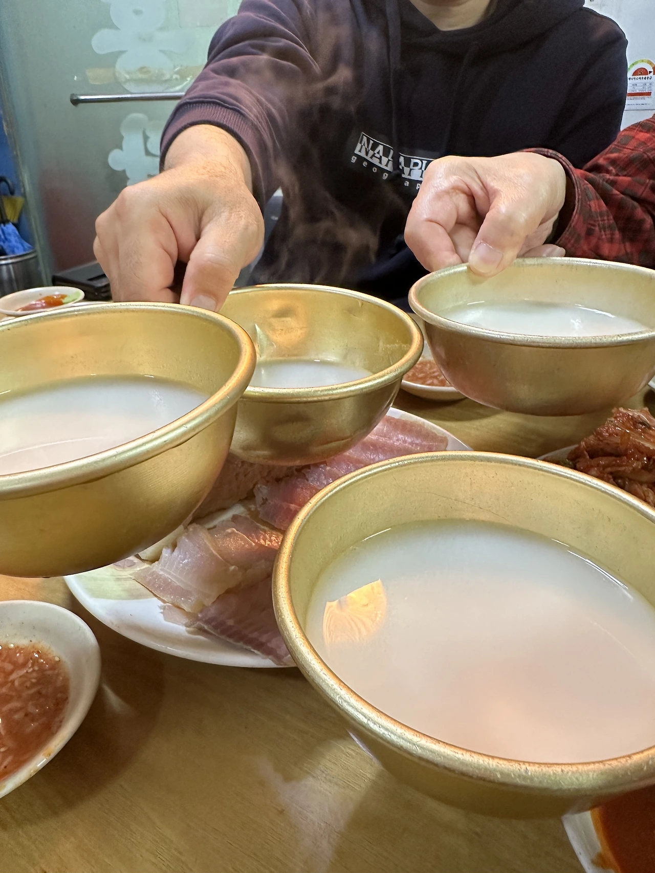 홍어 특유의 톡쏘는 맛과 냄새가 어루러져 시원하게 넘어가는 막걸리는 단연 최고의 조합이다.