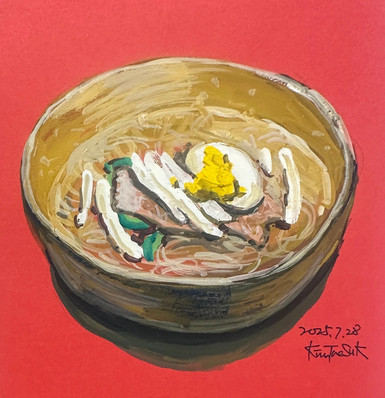 아크릴물감이랑 비슷해 보이지만 성격은 다르다. 아크릴은 굳으면 다시 물에 녹지 않지만,