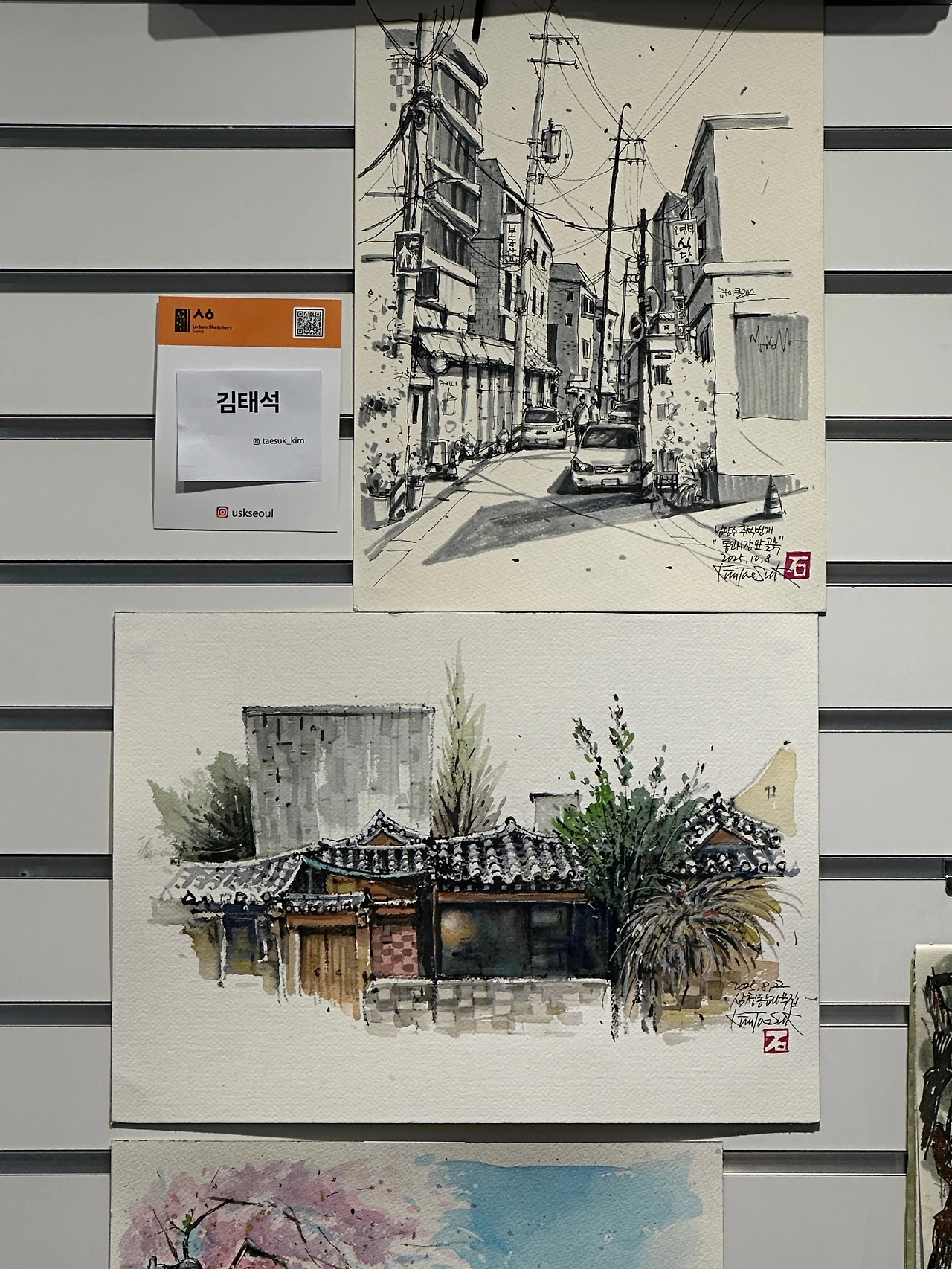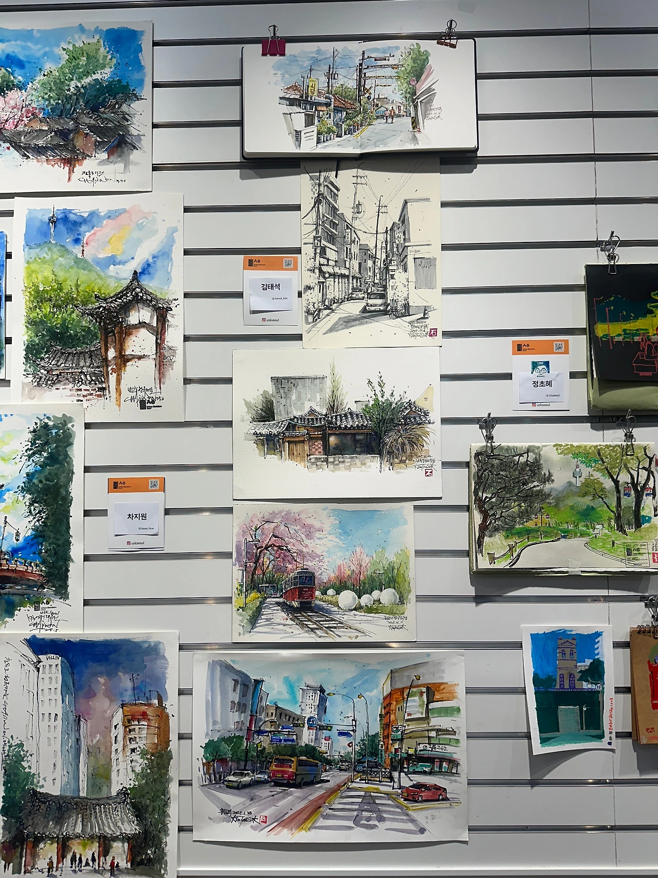 야외수업 때나 남양주어반 번개모임 때 그린 그림 중에서 다섯 개 작품을 추려서 전시하게 되었다.