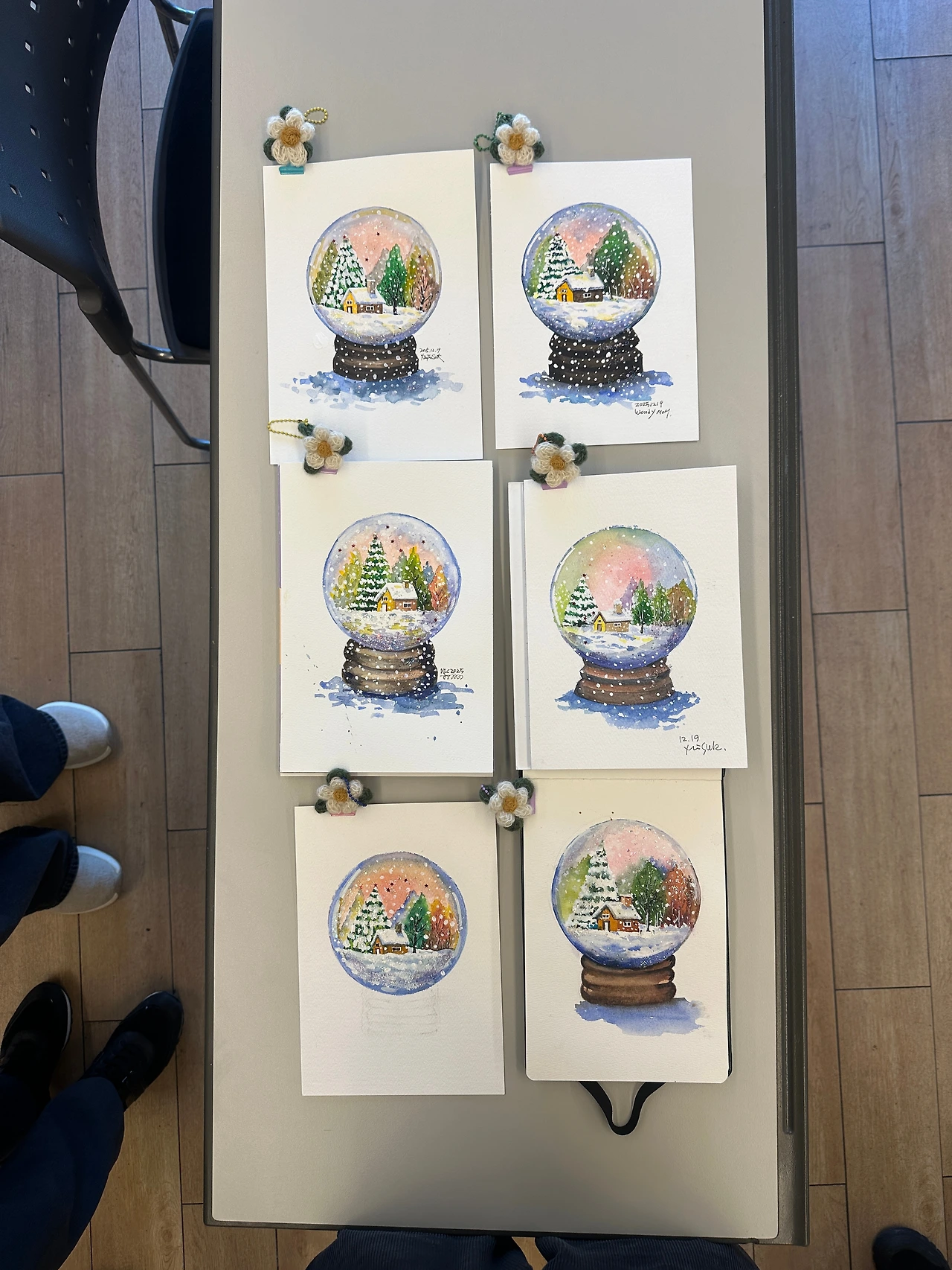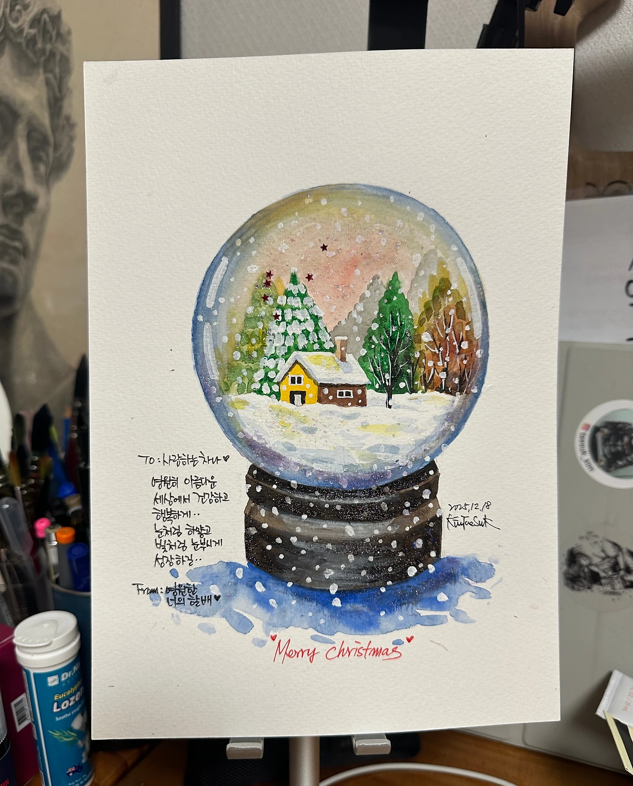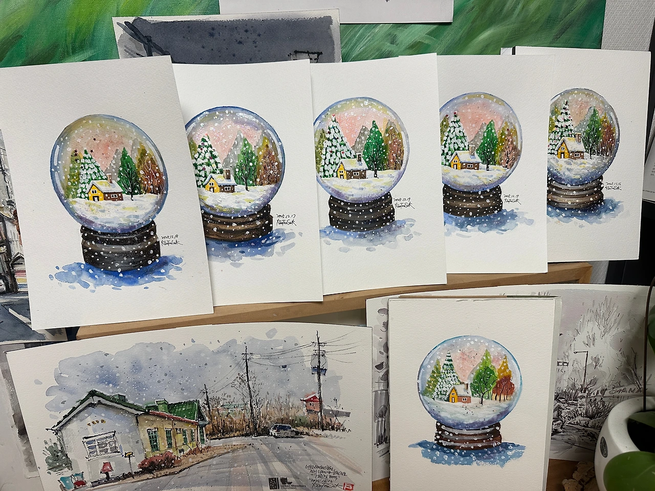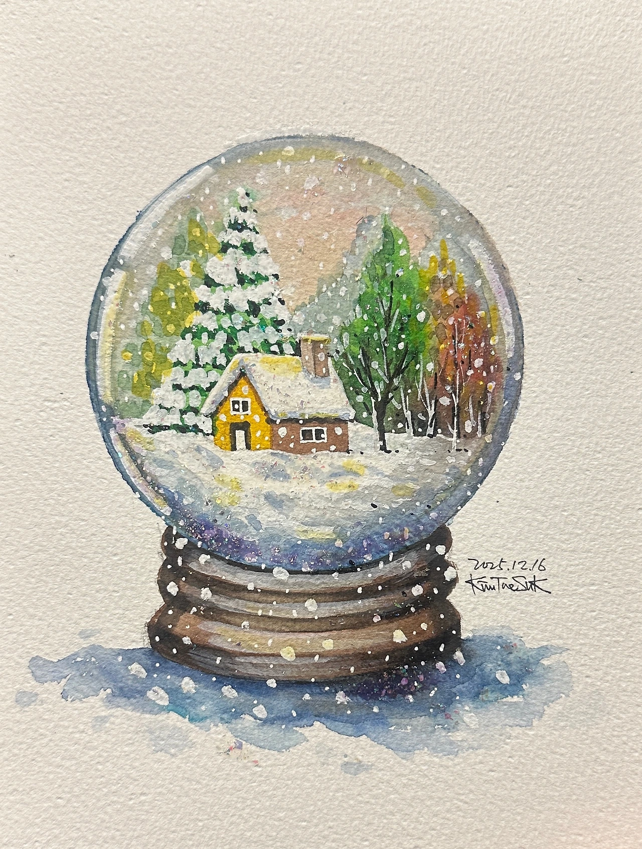 스노우볼을 그리는 동안 잠시 그 안으로 들어간 듯한 기분이 듭니다.