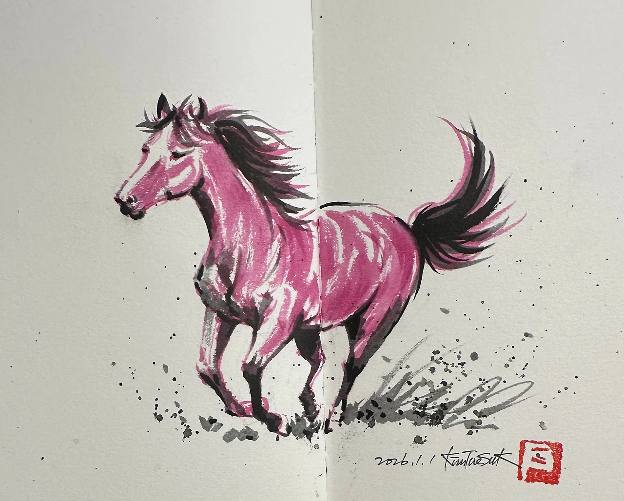 신년 인사를 대신하려고 퀵 드로잉으로 그린 “적토마”였다.