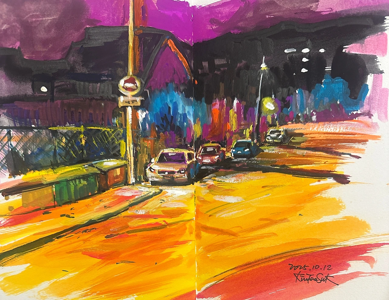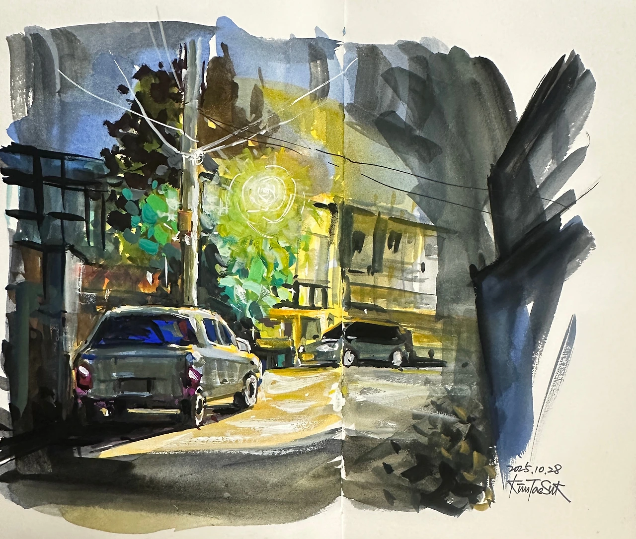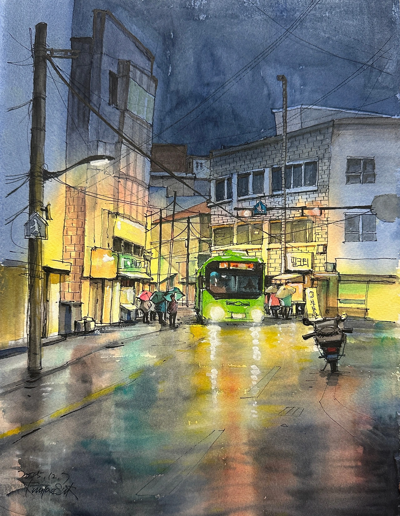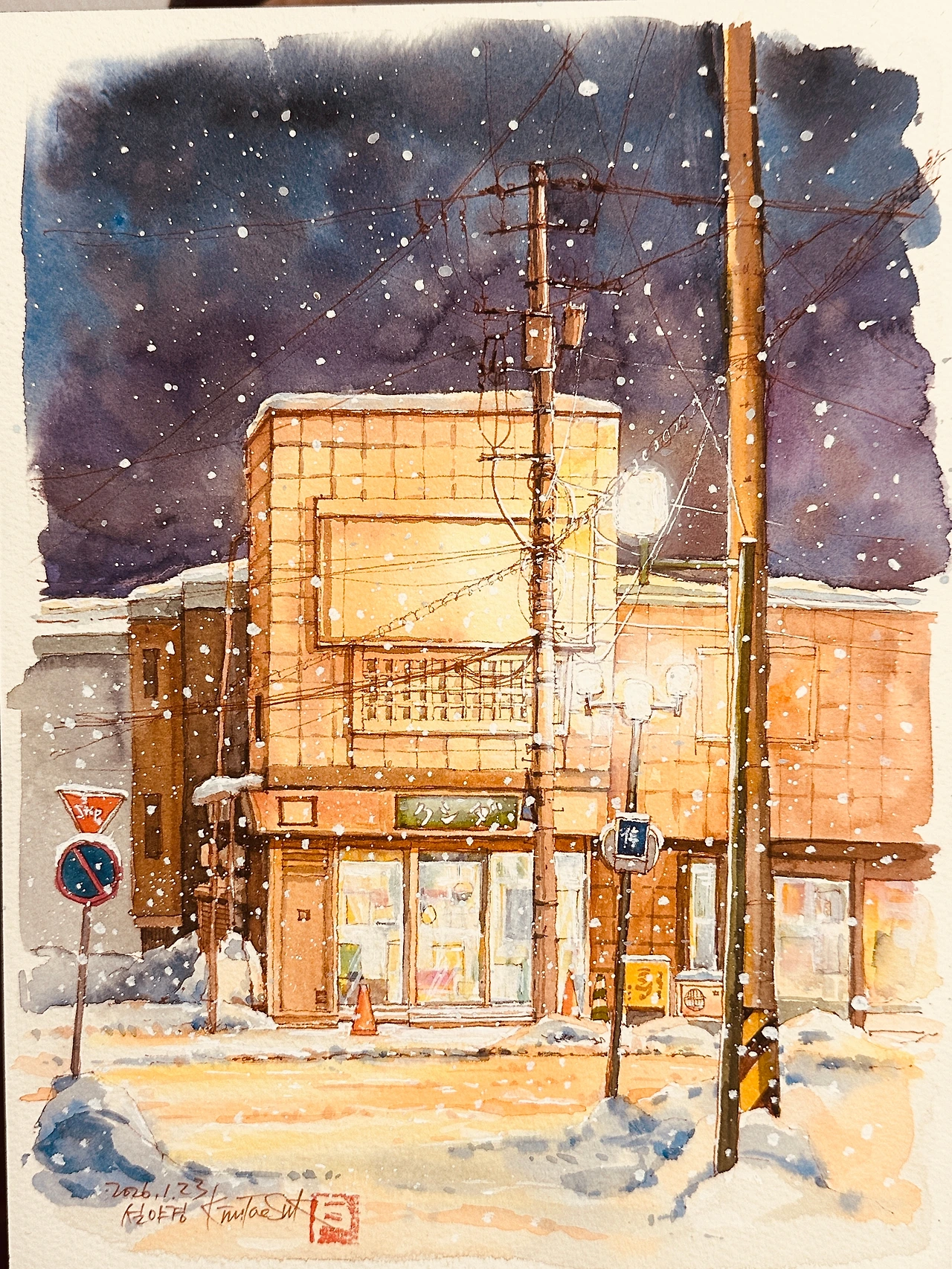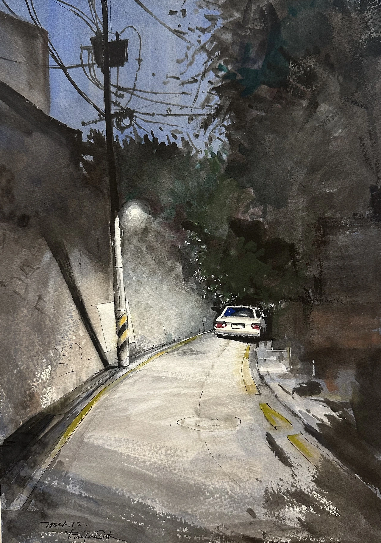 야경은 그렇게 보이지 않는 것들을 가라앉히고 남겨야 할 것만 조용히 종이 위에 남긴다.