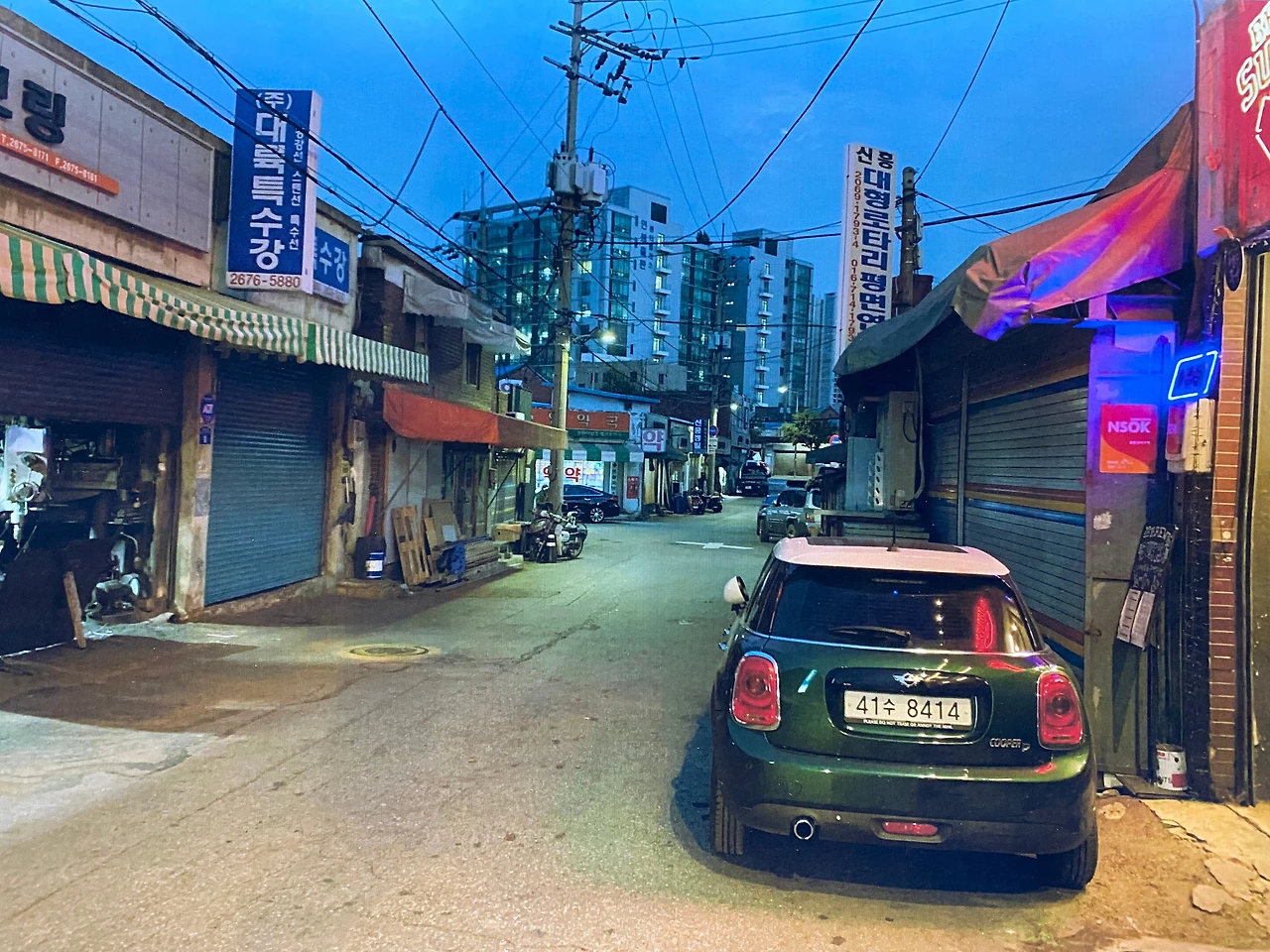 낡고 오래된 건물, 복잡하게 얽혀있는 전깃줄의 골목, 간판과 공구들..
