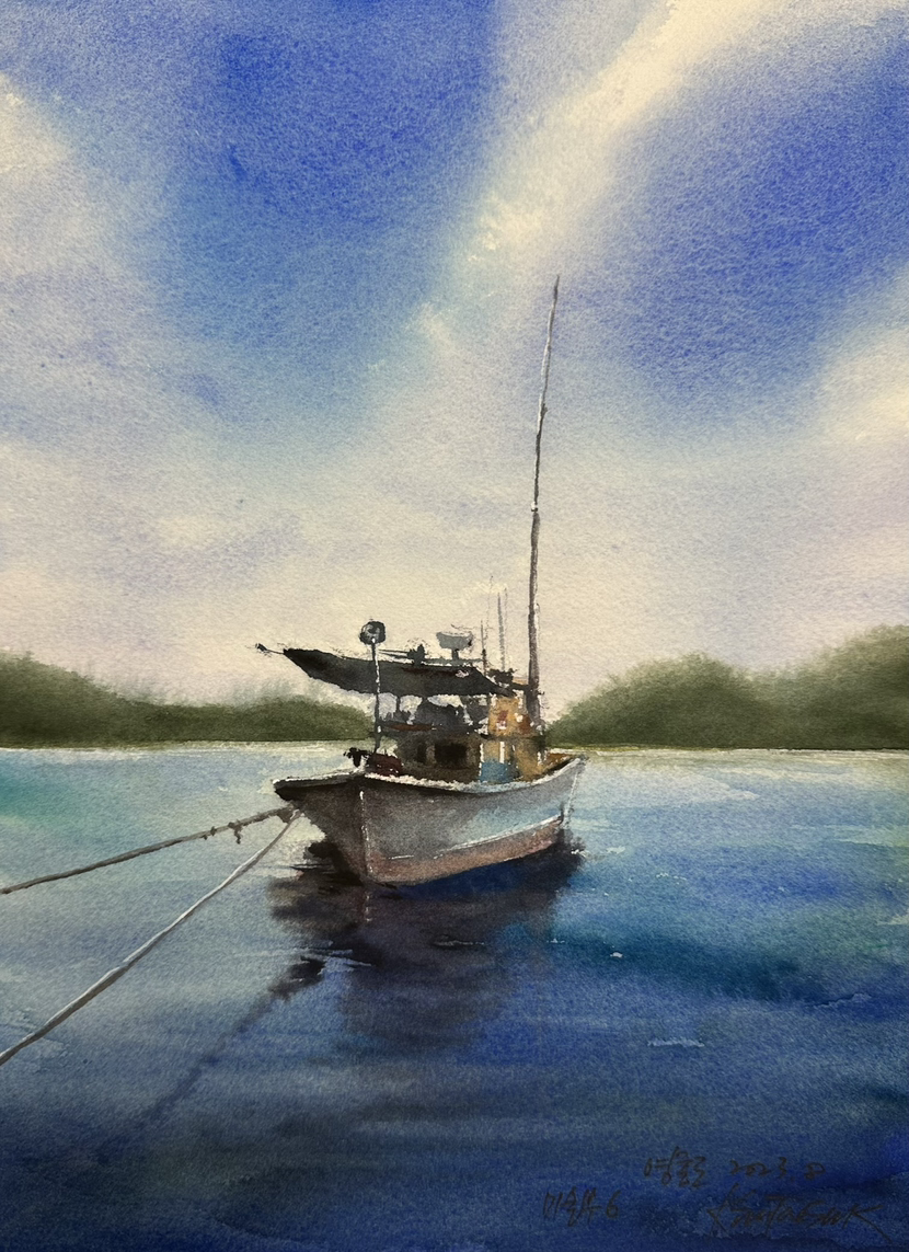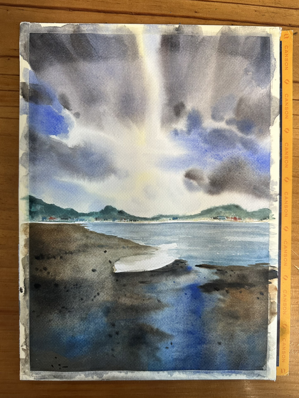 하늘을 거칠게 완성시키고 갯벌은 물번지기를 이용 이 또한 거칠게 표현했다.