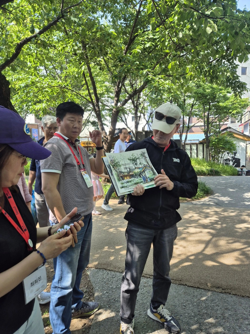 예전에 그렸던 장소에 자리를 잡고 한 장 그리고 나니 많은 사람들이 관심을 가지고
