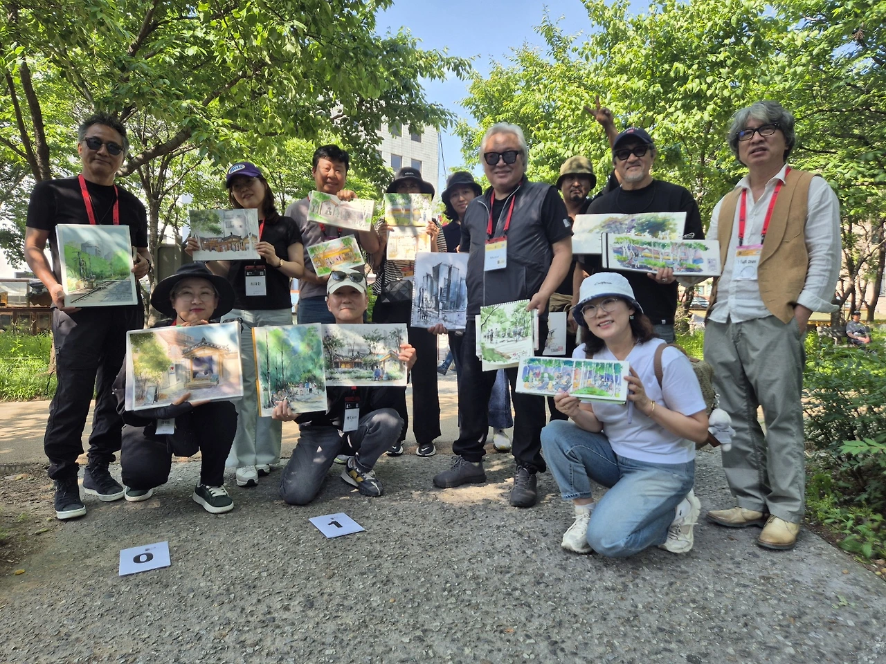150명의 어반스케쳐스가 현장에서 함께 그림을 그리고 있다는 자체가 대단한 광경으로