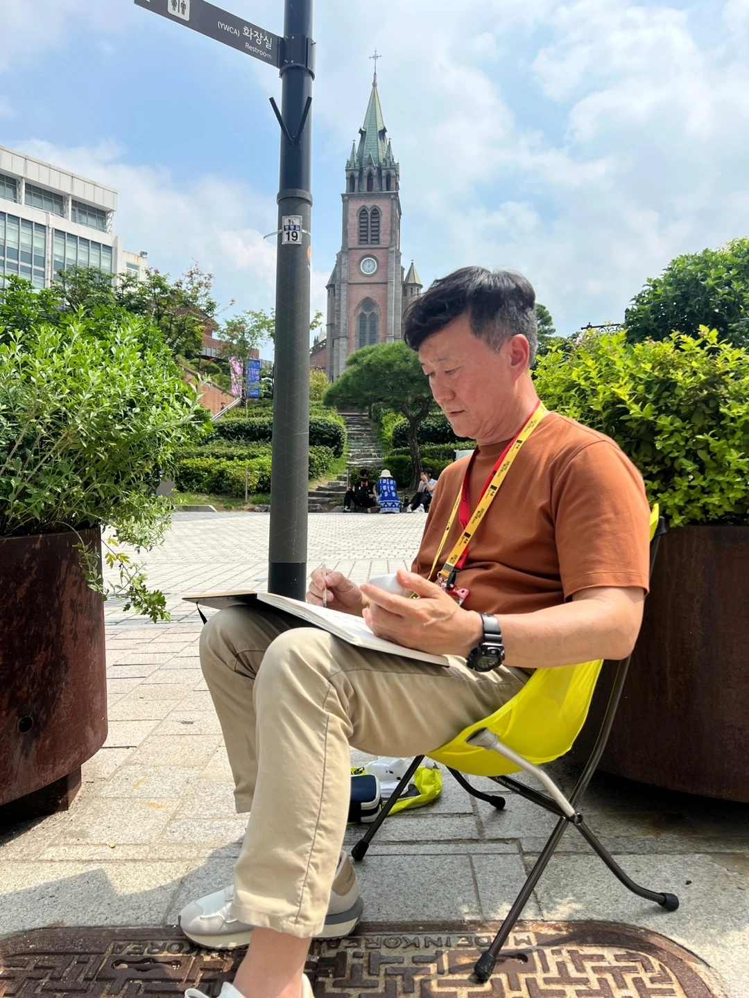무더운 여름날씨에도 불구하고 많은 어반스케쳐스가 참여를 하여 곳곳에서 물감냄새가
