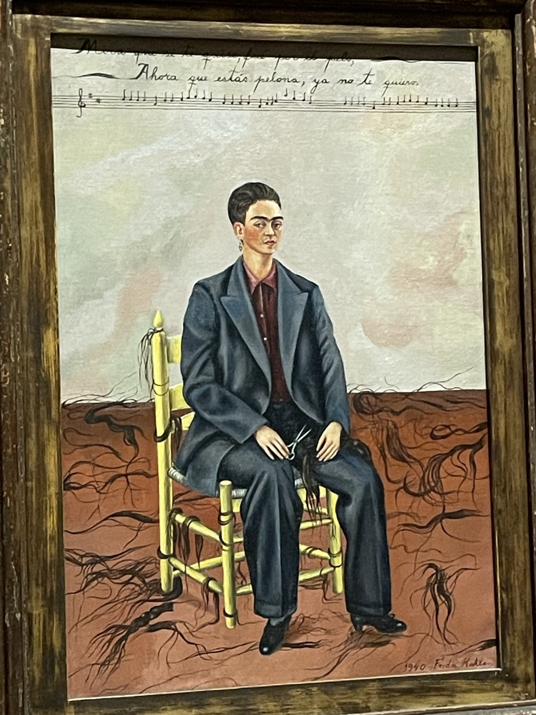 ‘벨벳드레스를 입은 자화상’ 그림에 나는 한동안 시선을 빼앗겼다. 이 그림은 그녀의 첫 작품이자 첫 자화상으로 그녀의 어릴 적 연인이었던 알레한드로 고메즈 아리아스를 위해 그린 것이라 하는데,