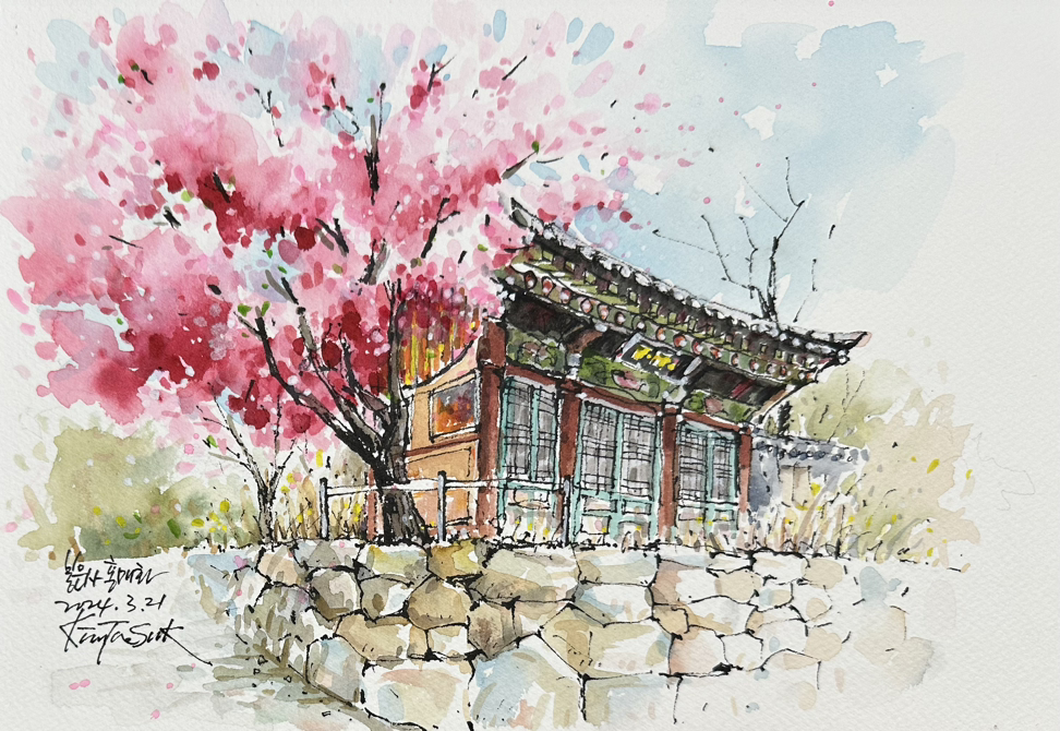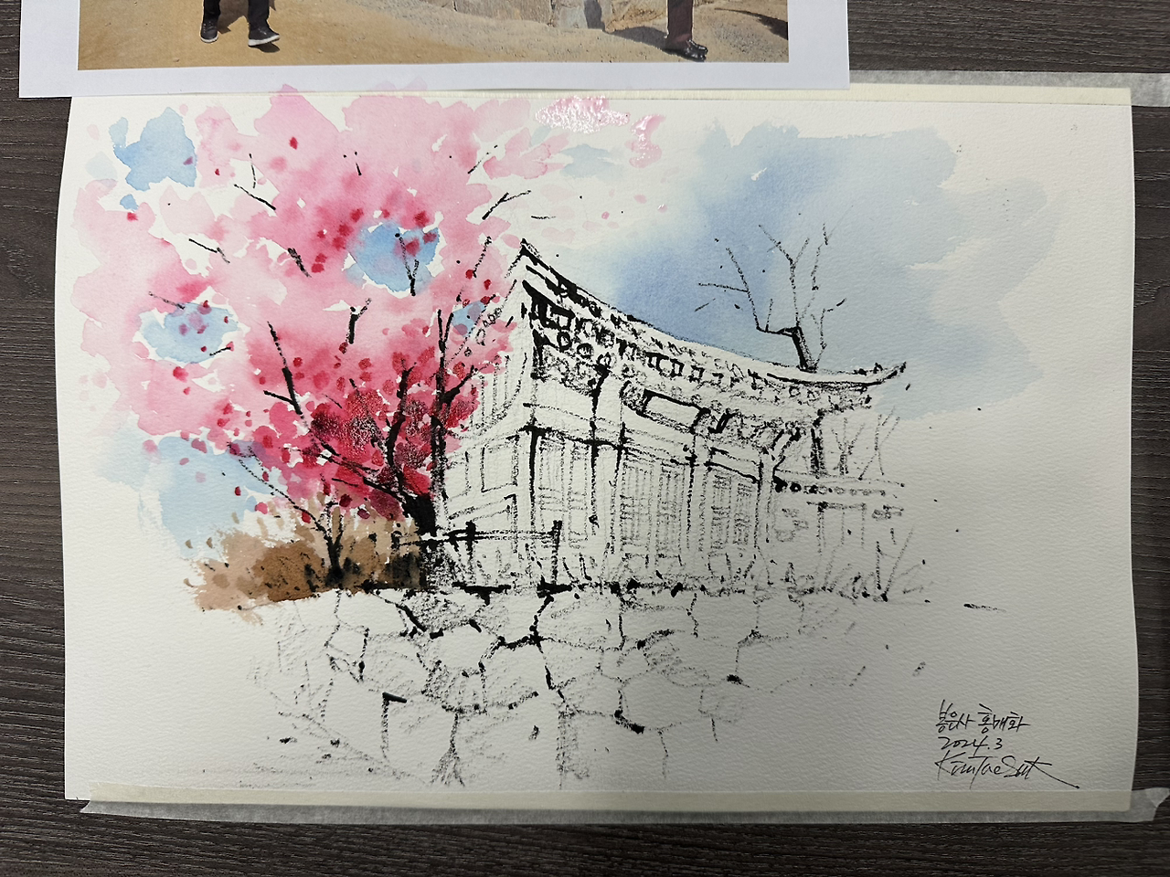 바로 홍매화 그리기 수업을 하기 위해서였는데~