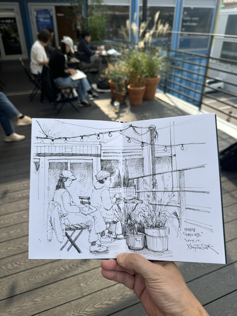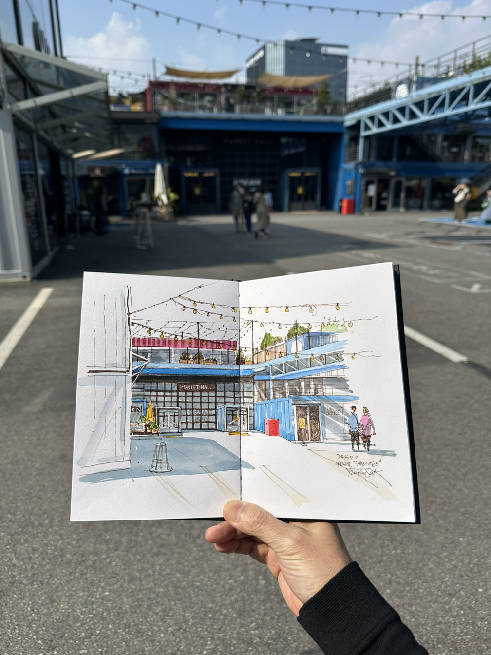 늘 이야기 한 내용이지만 어반 스케치라는 장르는 원래 현장에서 당시의 분위기에서 오는 느낌과 감정을 솔직하게 표현하는 것인데..