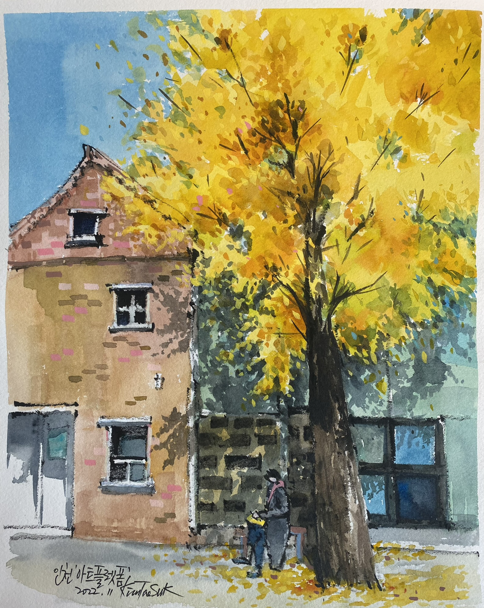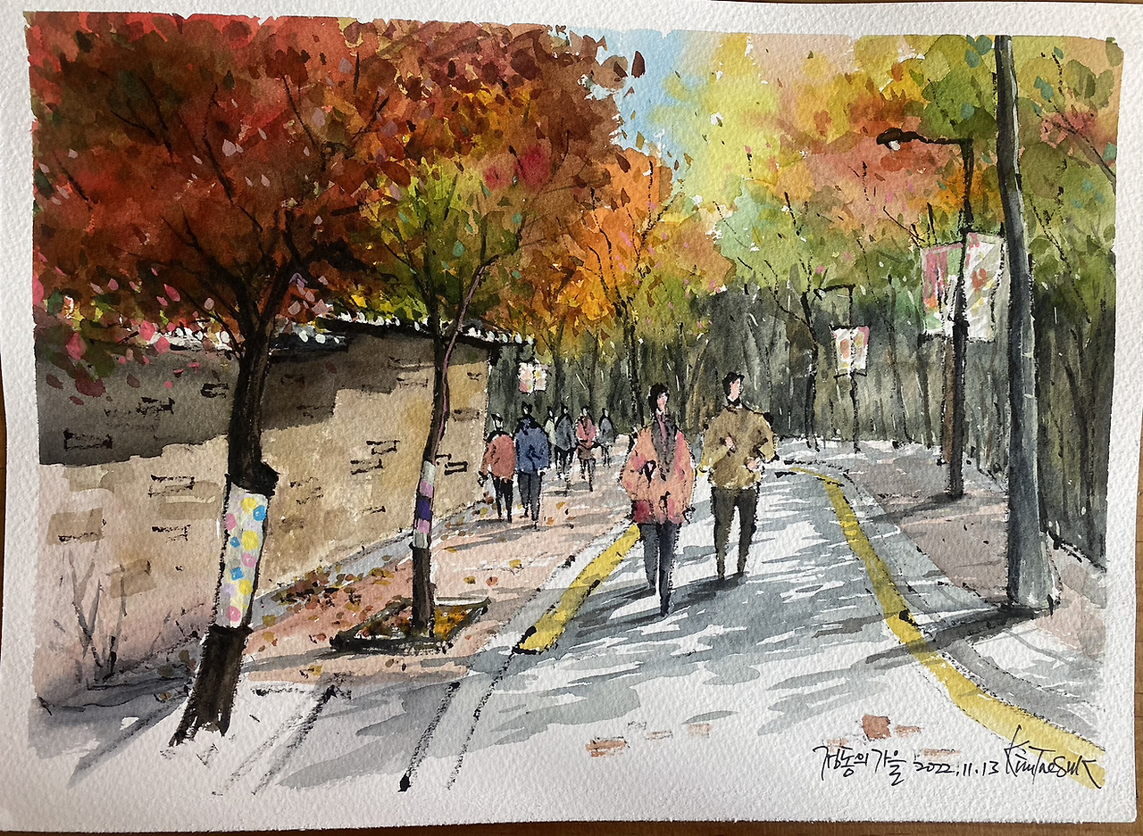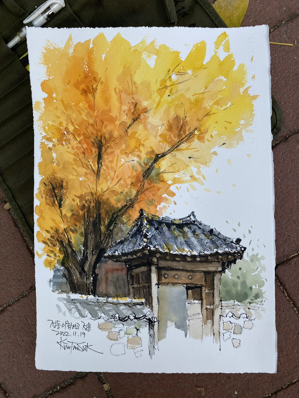 아름다운 단풍나무의 잎이 떨어지기 전에 자주 어반 스케치를 해야겠다.