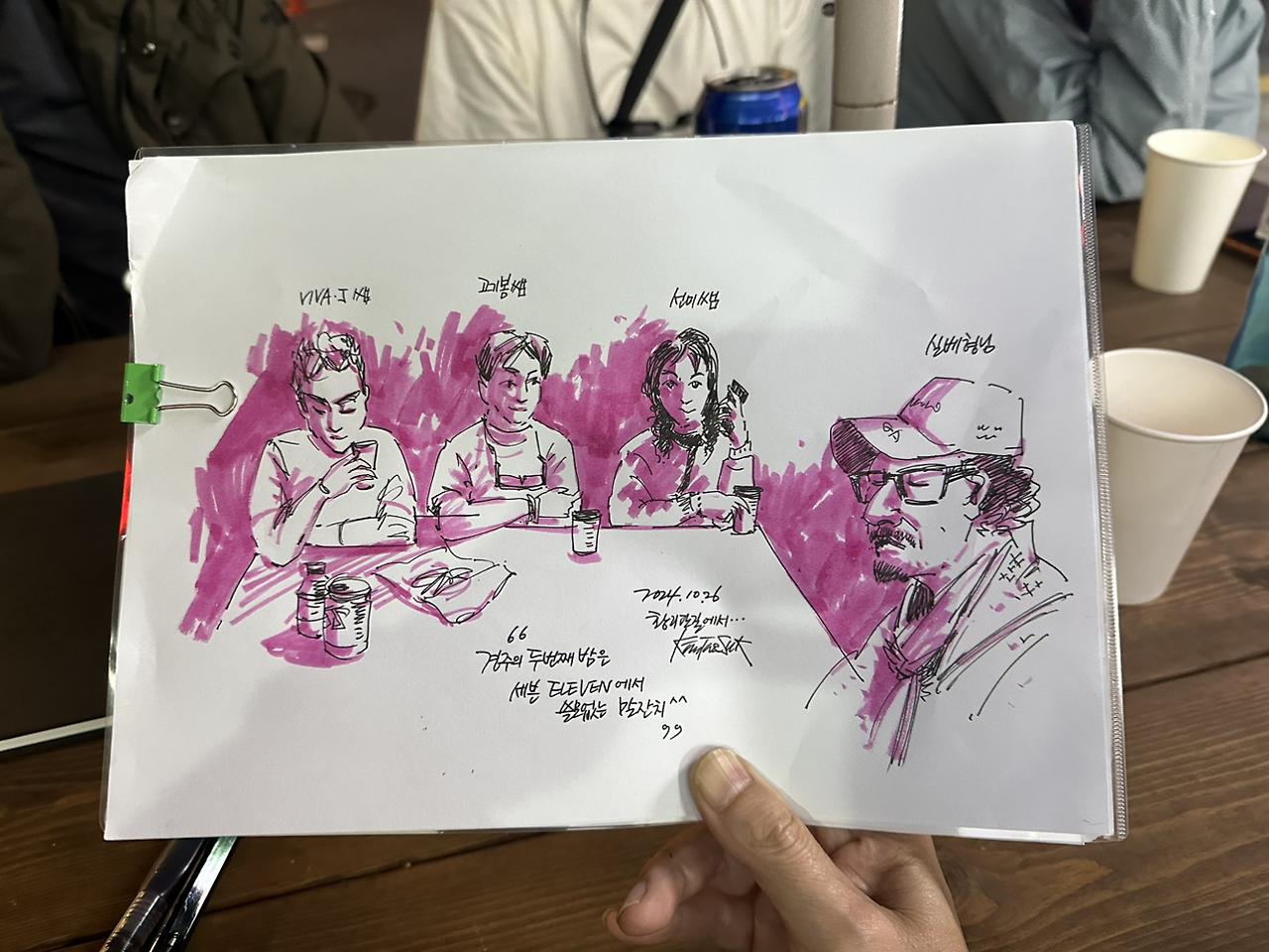 소설재인 숙소로 돌아와 여러 선생님들과 또다시 야간드로잉 시연을 함께했다.