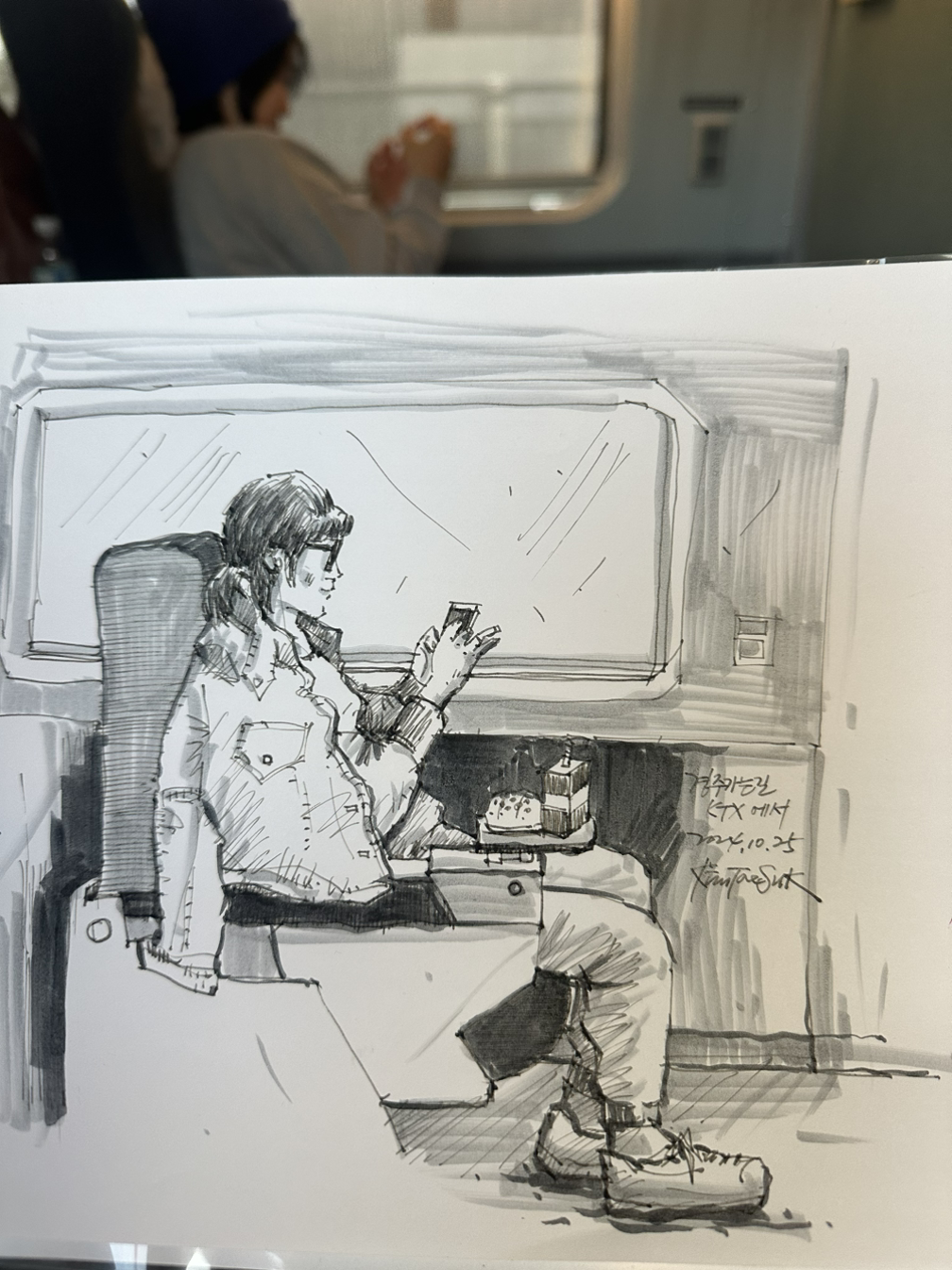 경주로 향하는 KTX에서 옆자리의 인물을.조금은 긴장도 되고 설레인 마음으로 드로잉하며 출발했다.