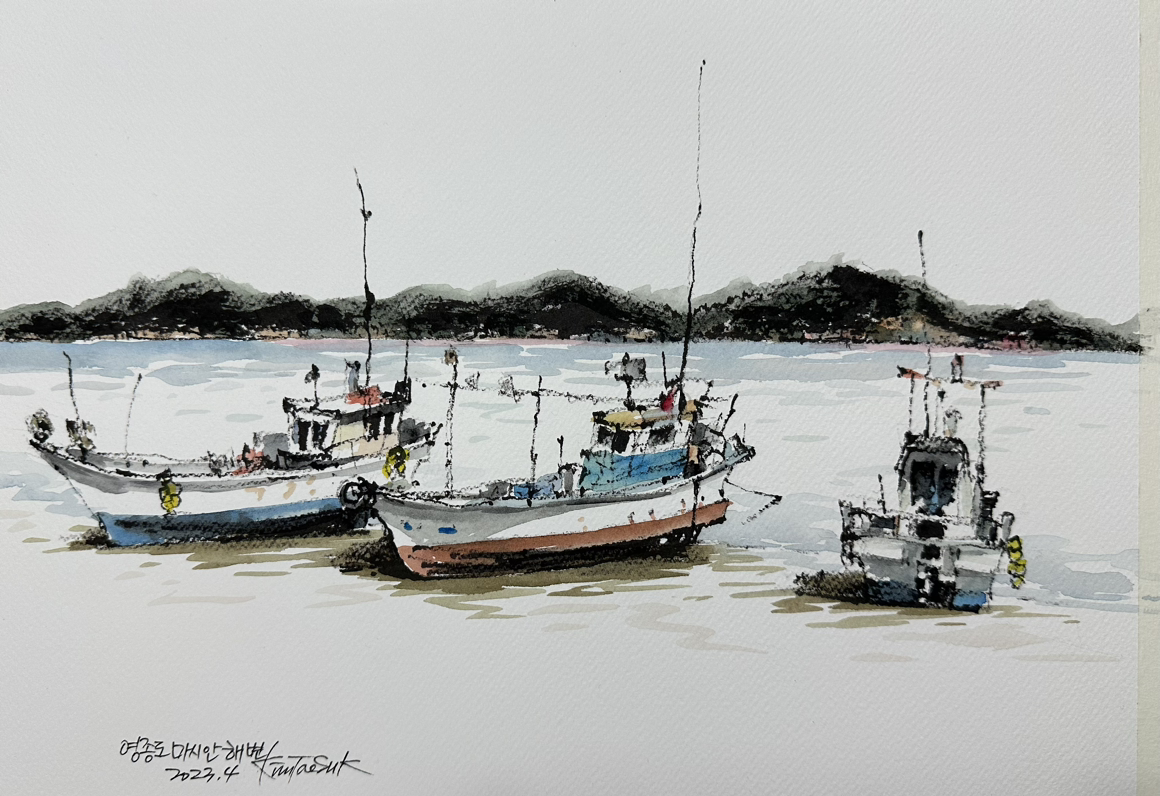 도시에서 나고 자라 평생을 생활 한 나로서는 가끔 여행이나 가는 바다와 항구를 현장에서 그림 그리기가
