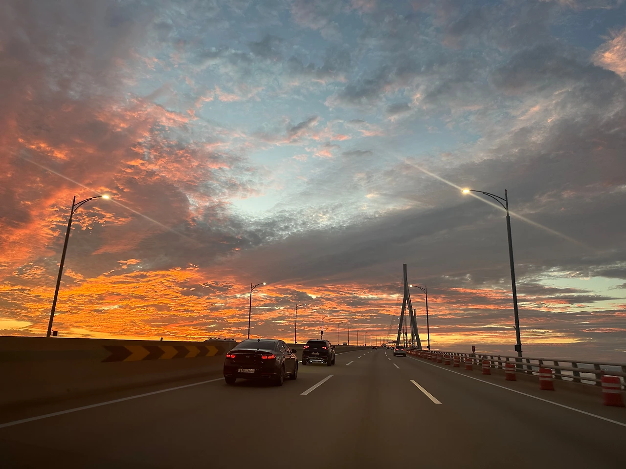 인천대교 끝에 걸려있던 가슴까지 벅차게 움직였던 붉은 석양~!