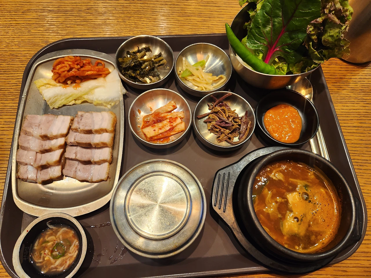 30분 넘게 줄을 섰는데, 체크인 시간이 아니라고 2시간 후에 오라는 이야기를 들었다. 음.. 아무래도 파도처럼 흘러가는 대로 살았어야 했나 보다. 결국 배고팠던 나는 밥을 먹으러 갔는데 출국장과 가까운 4층 식당가보다 지하 1층이나 1층에 있는 식당이 더 좋았던 기억이 있어서 거기로 갔다. 너무 힘들어서 고기가 땡겨서 보쌈정식을 시켰는데 15000원에 꽤 괜찮은 밥이 나왔다.